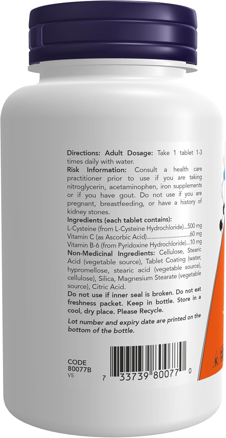 NOW Supplements, L-半胱氨酸 500 毫克,含维生素 B-6 和 C,结构支持,100 片