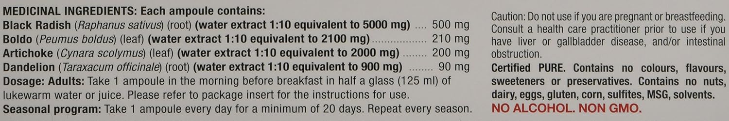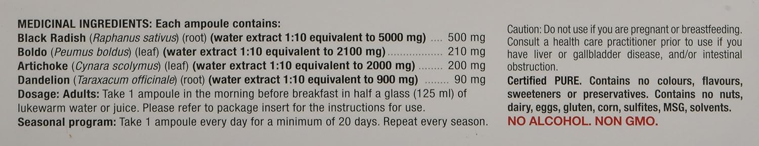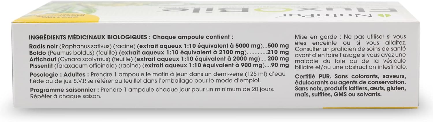 100%有机肝脏清洁剂,通过刺激胆汁功能,恢复更佳的消化功能。Flux-O-Bile 是一款基于传统草药的10天肝脏清洁疗程。其速效液体配方能够快速有效地清除体内累积的毒素。Flux-O-Bile 有助于排出胆汁,改善肝、胆和肾功能。每年使用四次,每次20天,最好在换季时使用。强烈建议在开始减肥计划或计划怀孕前使用 Flux-O-Bile。经 Ecocert 认证,100% 有机。不含色素、香精、甜味剂或防腐剂。不含坚果、乳制品、鸡蛋、麸质、亚硫酸盐、味精、溶剂或污染物。不含酒精。