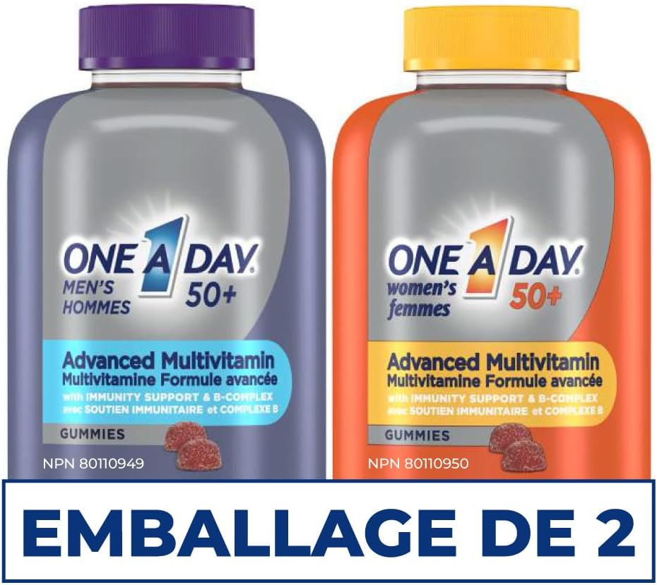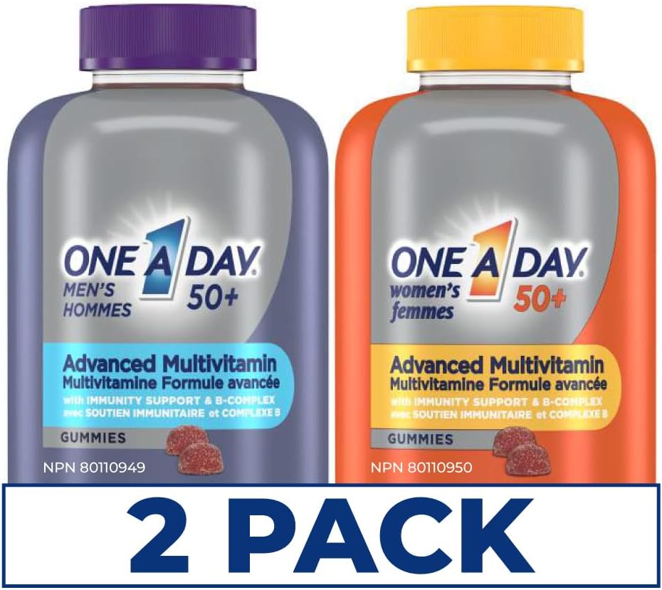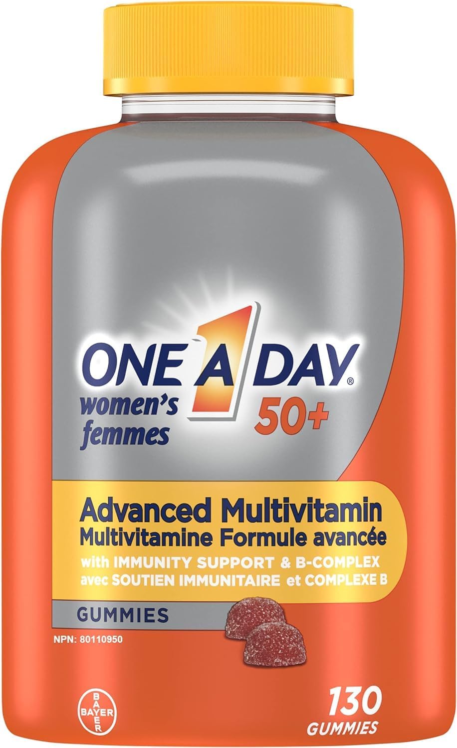 高级复合维生素,支持大脑功能和免疫力:One A Day 50+ 女性高级复合维生素,支持免疫力和 B 族维生素软糖专为 50 岁以上女性配制,富含维生素 A、C、D 和锌,有助于维持免疫健康*,以及所有 8 种 B 族维生素,有助于支持大脑功能,并以您喜爱的软糖形式呈现。