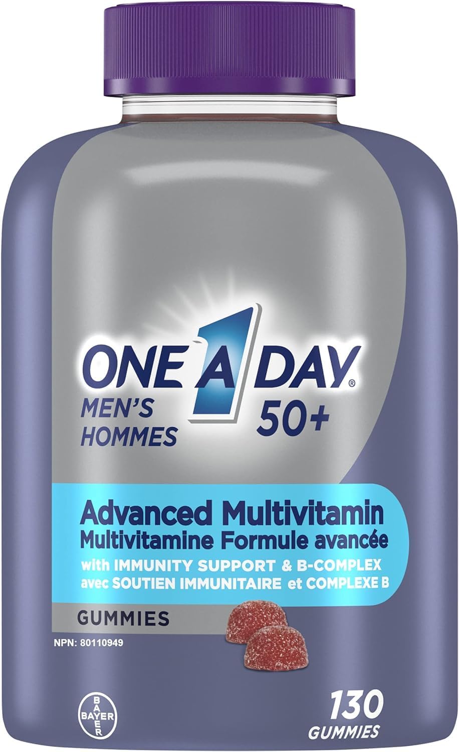 50岁以上男性的日常营养支持:One a Day 男士 50+ 高级复合维生素软糖采用特殊配方,富含维生素和矿物质,可满足50岁以上男性单靠饮食可能无法获取的营养需求。