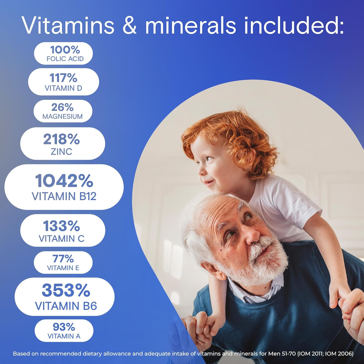 每日一片复合维生素,适合 50 岁以上的男性 - 男性每日维生素,含维生素 A、B、C、D、E、钙、硒、镁和锌,支持免疫、骨骼、心脏和眼睛健康,以及能量,90 片装