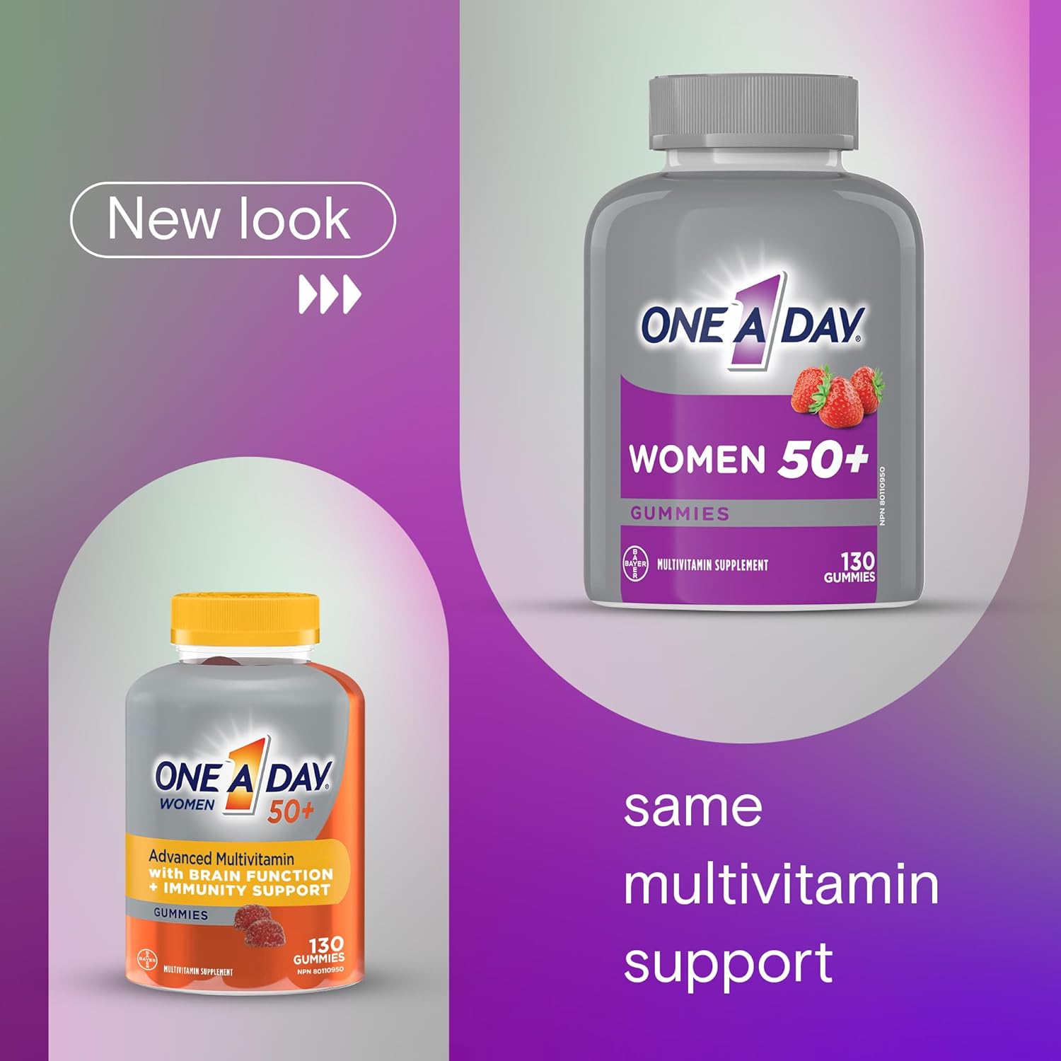 One A Day 女士 50 岁以上复合维生素软糖 - 高级复合维生素软糖,支持大脑功能和免疫力,富含维生素和矿物质,适合 50 岁以上女性,130 粒软糖