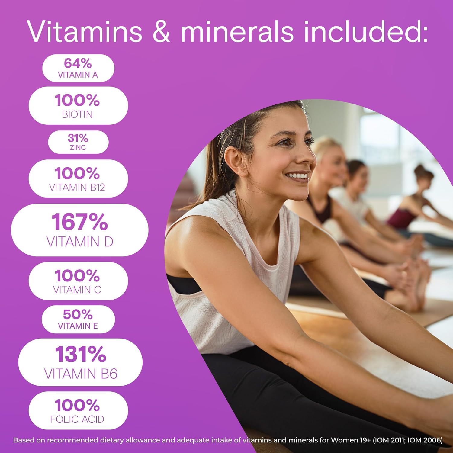 每日一片女士复合维生素软糖 - 每日补充女性所需维生素软糖,含维生素 A、C、D 和锌,有助于增强免疫功能,含生物素,有益于头发、皮肤和指甲健康,130 粒软糖