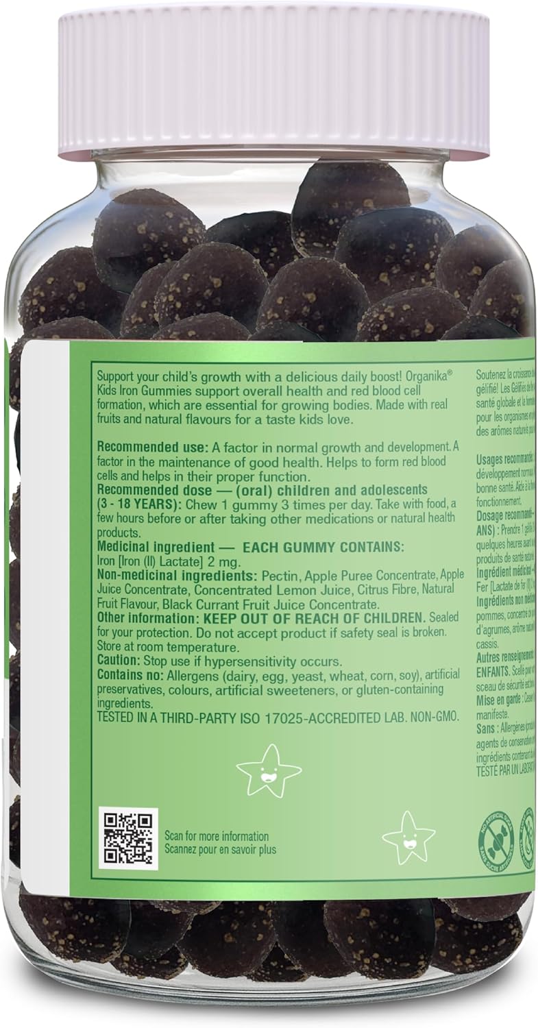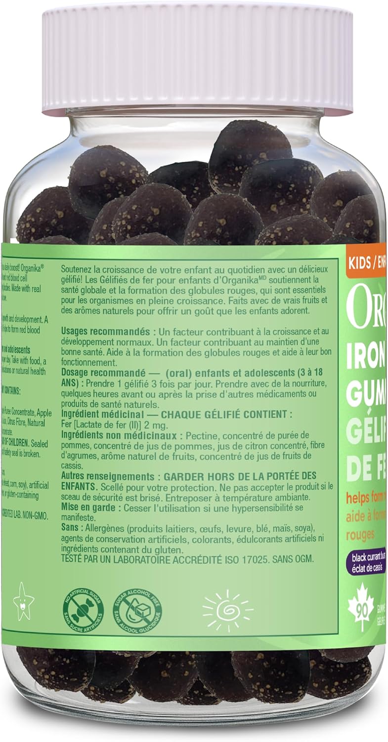 Organika 儿童铁质软糖(黑加仑味)- 补充必需铁质,帮助形成红细胞,促进生长发育 - 90 粒软糖