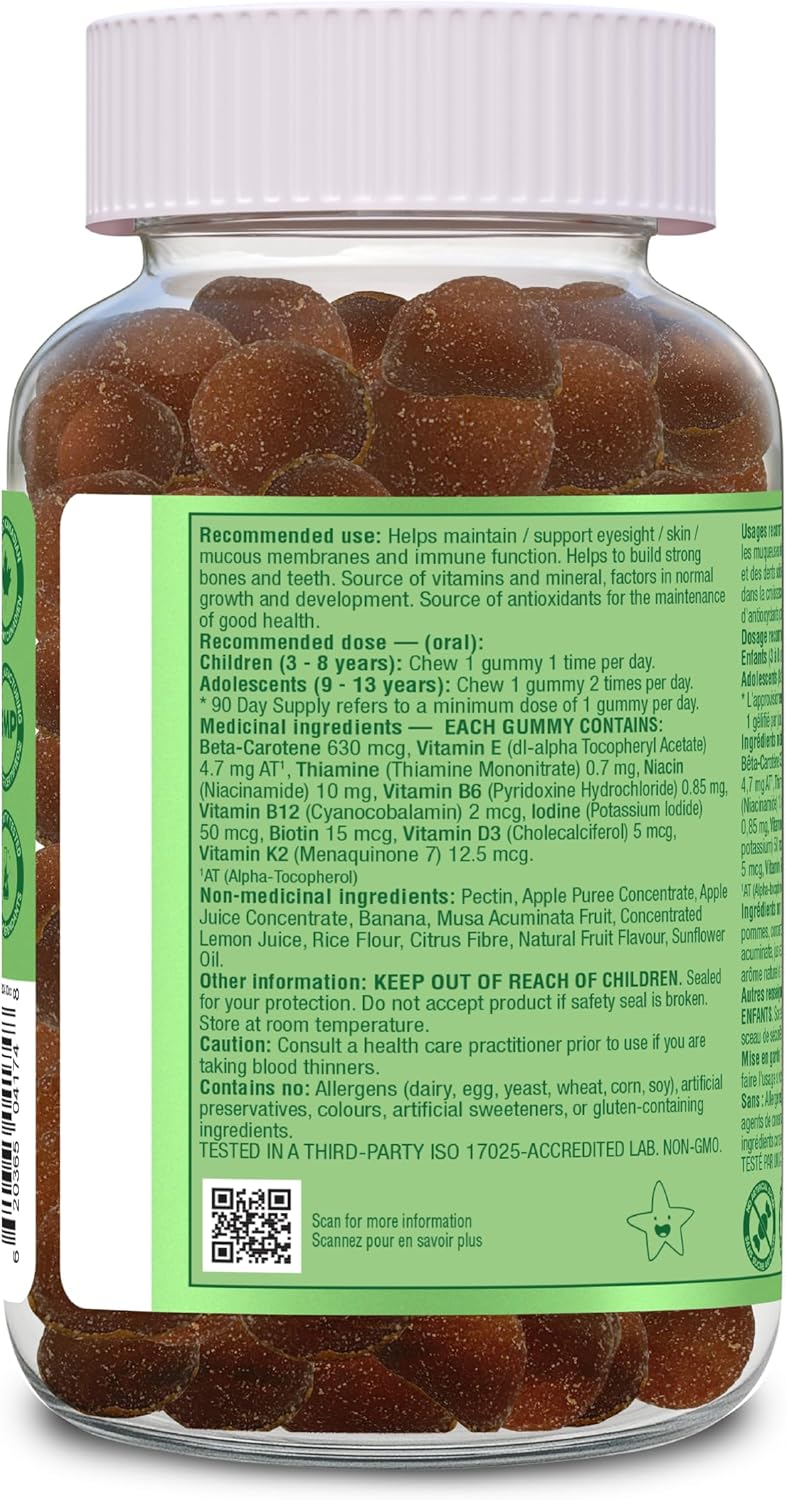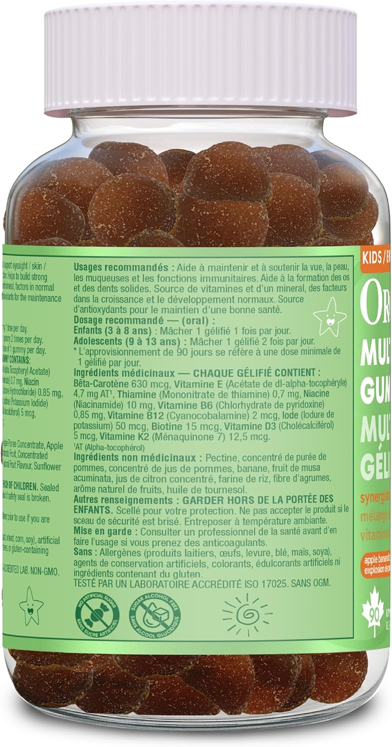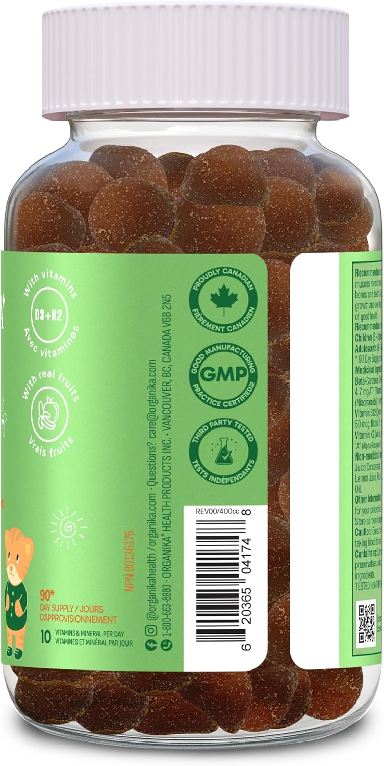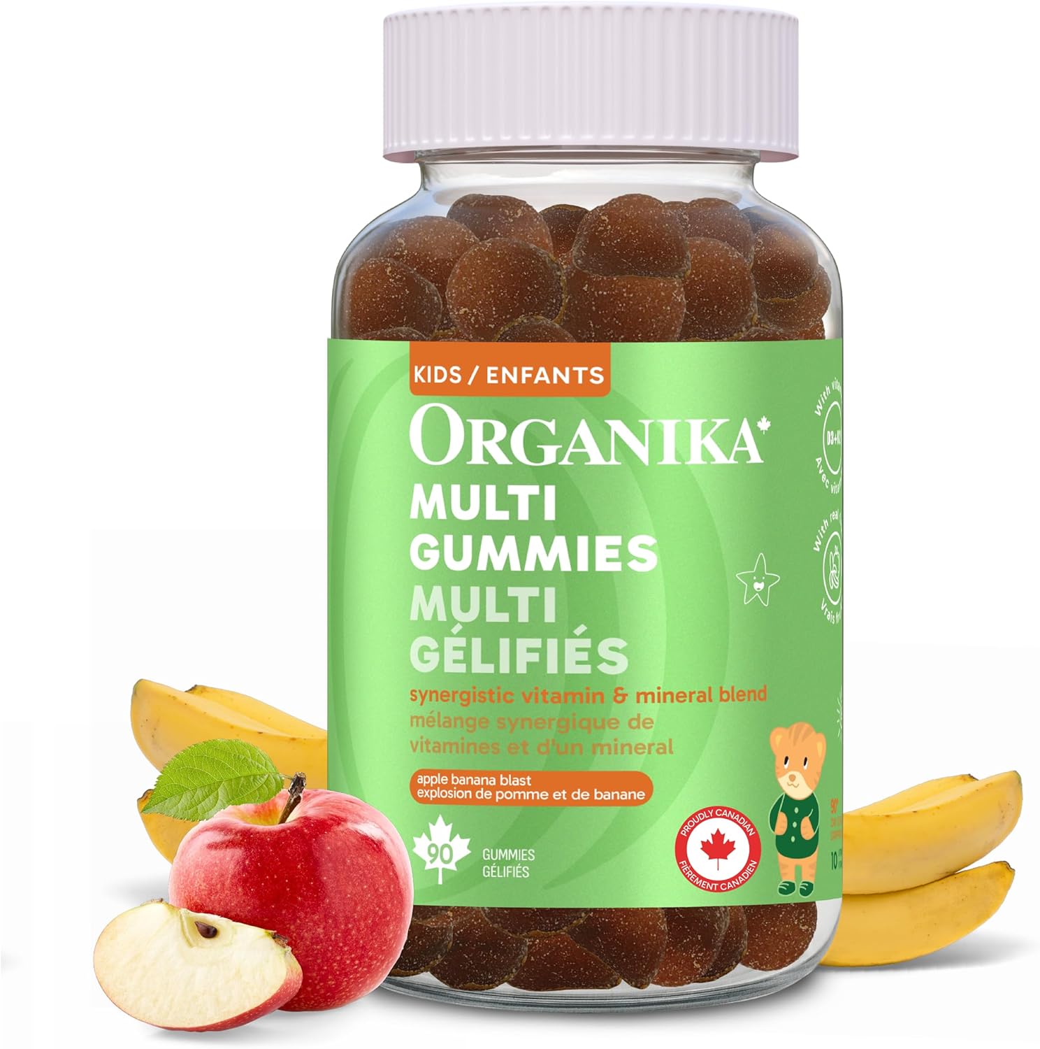 Organika 儿童复合维生素软糖苹果香蕉味 - 协同维生素和矿物质混合物,支持适当的营养、免疫力、骨骼健康和整体发育 - 90 粒软糖