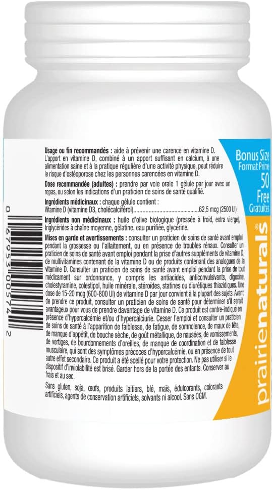 Prairie Naturals 维生素 D3 胆钙化醇 2,500iu 软胶囊,550 粒