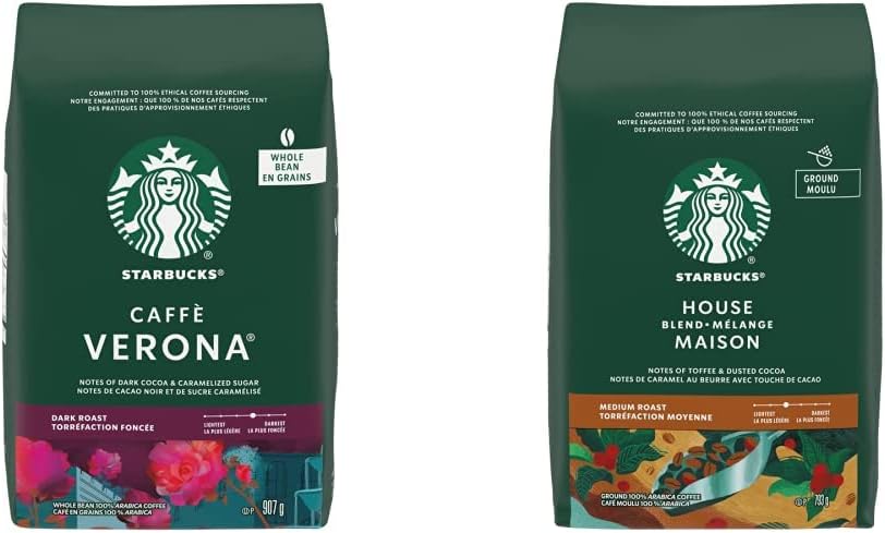 星巴克 Caffe Verona 全豆深度烘焙咖啡,907 克 & 研磨咖啡混合,793 克