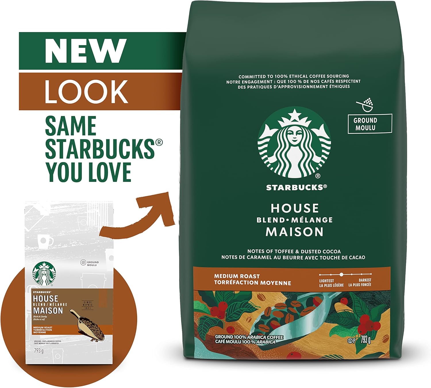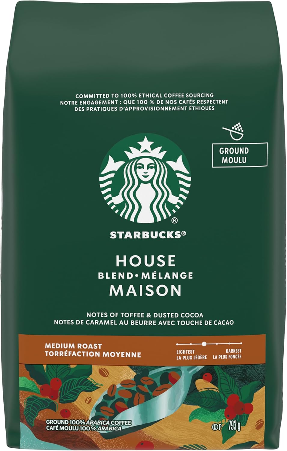 星巴克混合烘焙研磨咖啡,中度烘焙,口感顺滑均衡,采用 100% 阿拉比卡咖啡豆制成,适用于滴滤咖啡机、手冲咖啡机和法式压滤壶,793 克