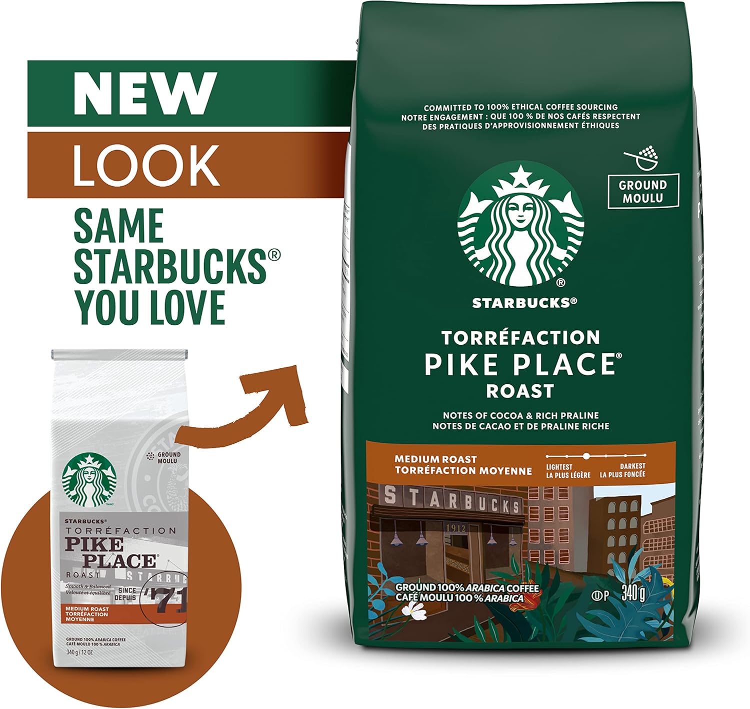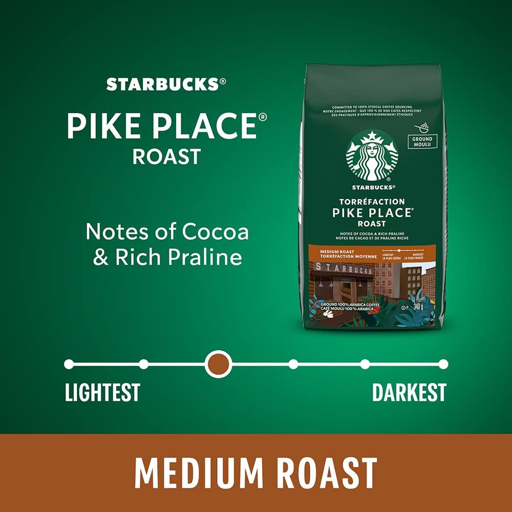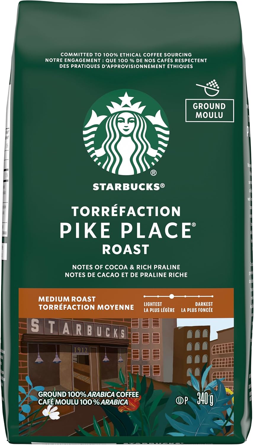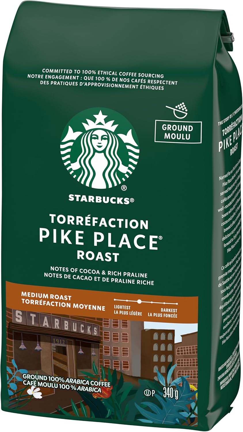 星巴克派克市场烘焙研磨咖啡,中度烘焙,口感顺滑,拉丁美洲咖啡豆混合均匀,340克/袋