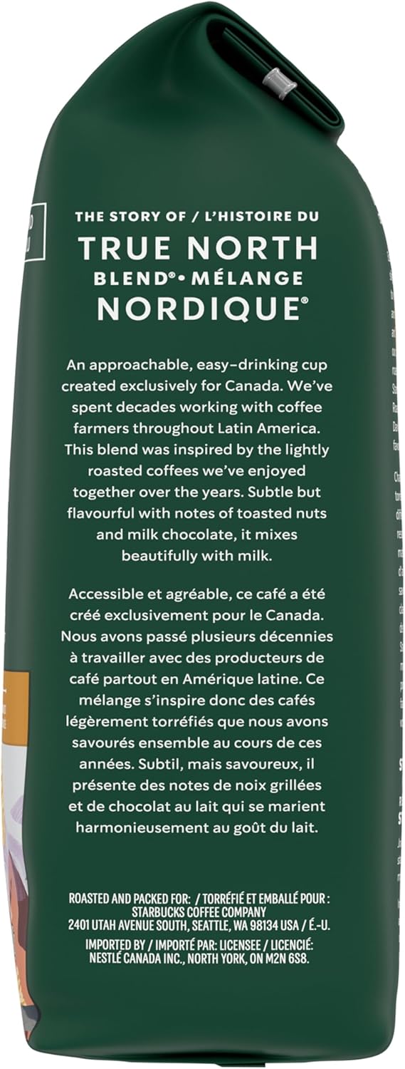 四十年的咖啡烘焙经验,启发我们的烘焙大师不断完善星巴克金牌烘焙——一款更轻盈、更柔和的星巴克烘焙。这款精选拉丁美洲咖啡豆的混合烘焙时间更短,让烤坚果和牛奶巧克力的细腻香气得以充分绽放。这款咖啡口感醇厚却不失浓郁,冲泡后令人愉悦,是招待朋友或迎接新一天的完美之选。TRUE NORTH BLEND 则与巧克力曲奇或山核桃卷完美搭配。这款咖啡采用我们咖啡馆使用的100%优质阿拉比卡咖啡豆,研磨成通用混合配方,适用于任何滴滤咖啡机、手冲咖啡机或法式压滤咖啡机。