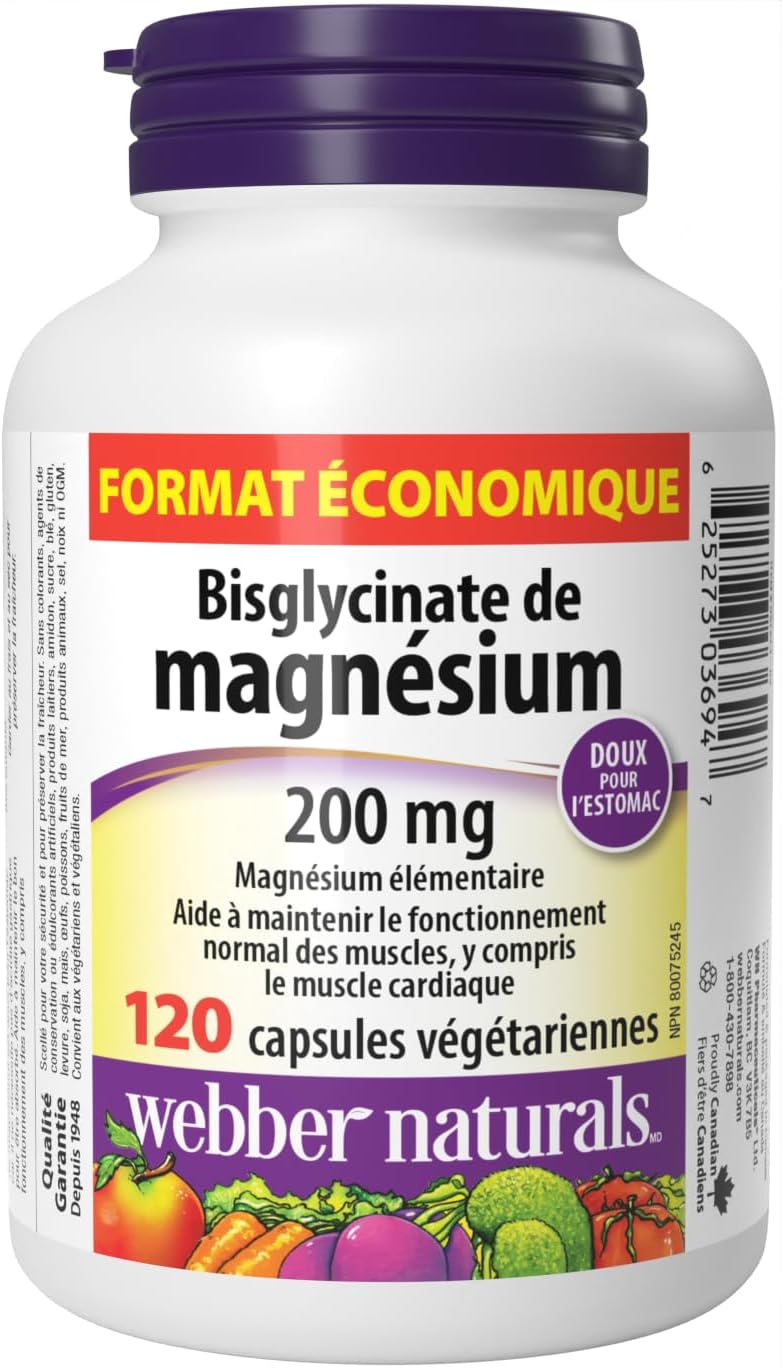 Webber Naturals 白藜芦醇葡萄籽提取物胶囊,200/25毫克。Webber Naturals 白藜芦醇天然存在于多种植物中,例如红葡萄、葡萄酒、花生和桑葚。葡萄籽提取物是一种广为人知的抗氧化剂,能够保护血管系统,并有助于治疗静脉曲张和痔疮等疾病。白藜芦醇葡萄籽提取物能够提供与红酒相同的健康益处,且功效持久,无需每天饮用过量葡萄酒。配合限制卡路里摄入,它还能延年益寿,并有助于预防或减缓与衰老相关的退行性疾病。本补充剂含有日本虎杖提取物(20% 反式白藜芦醇)和葡萄籽提取物(标准化为 80% 低聚原花青素)。日本虎杖富含反式白藜芦醇,即该化合物的活性形式。每瓶含90粒胶囊。Webber Naturals 双甘氨酸镁 200 毫克,120 粒胶囊,支持骨骼和肌肉功能,纯素。Webber Naturals 的双甘氨酸镁是一种更易吸收的镁,具有镇静作用,对消化系统温和。由于它不需要胃酸来吸收,因此不会引起腹泻或胃部不适。镁有助于维持正常的肌肉功能,包括心脏,并支持健康的骨骼和牙齿、组织形成以及营养物质的代谢。
