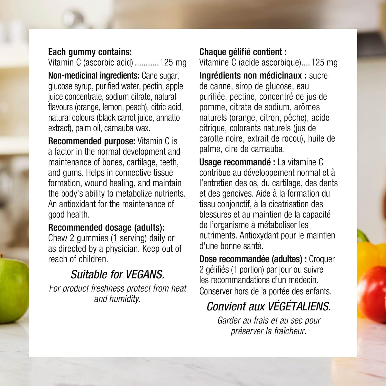Webber Naturals UltraCran 蔓越莓 10,000 毫克软糖和维生素 C 软糖 125 毫克,120 粒软糖,有益于骨骼、牙齿、免疫和抗氧化健康,纯素