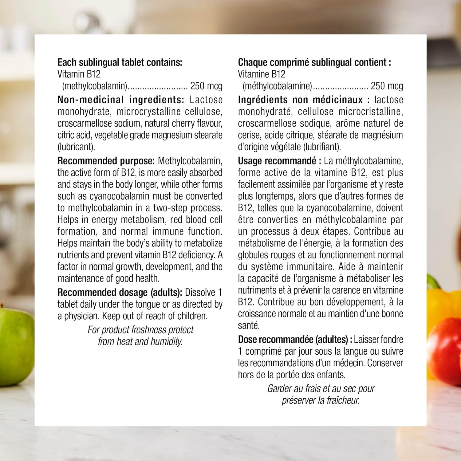 Webber Naturals 维生素 B12 甲钴胺 250 微克,每日一片,舌下含服,可提供每日维持剂量的生物活性维生素 B12。本品速效配方,溶于舌下,有助于预防维生素 B12 缺乏症,并支持免疫健康、能量代谢和红细胞生成。