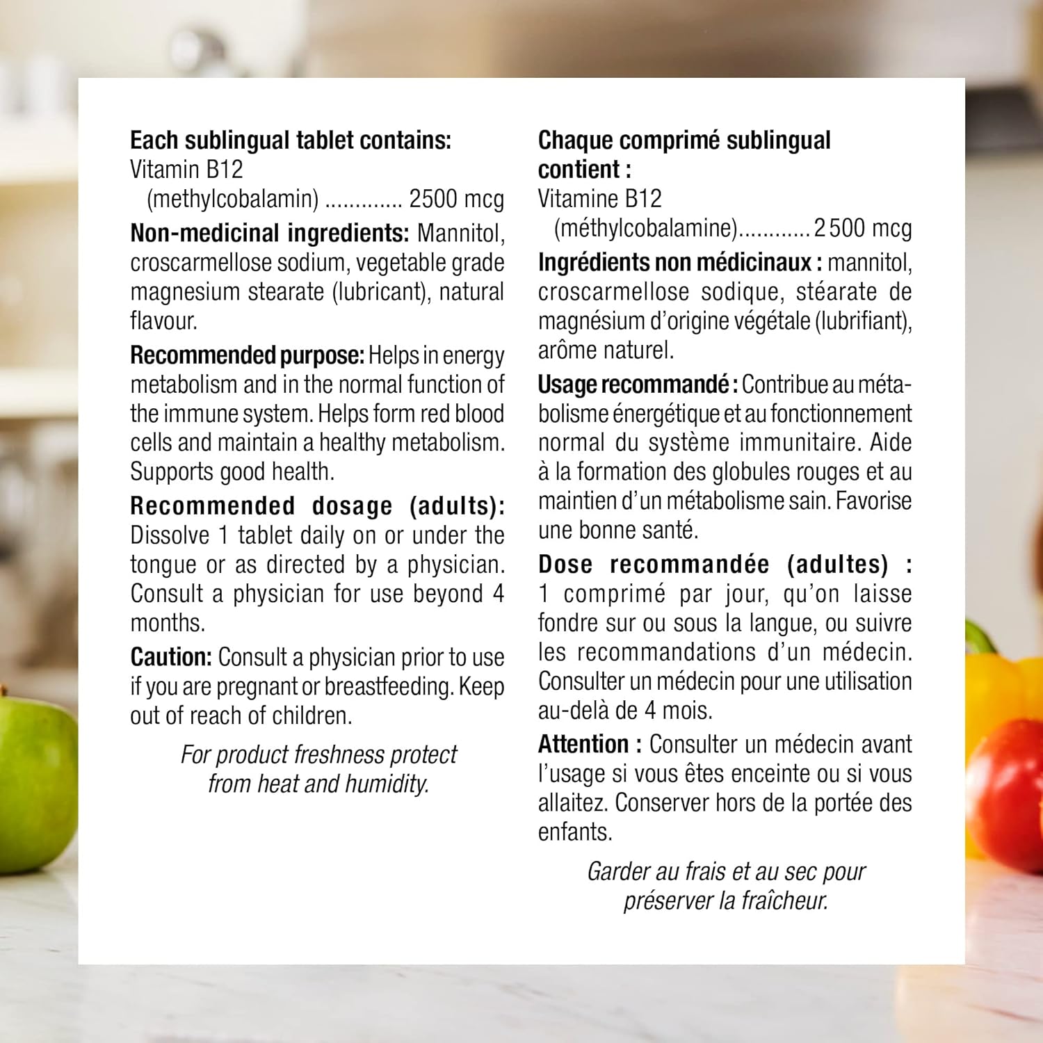 Webber Naturals 维生素 B12 2500 微克,速溶,110 片,天然樱桃味,支持能量产生和代谢
