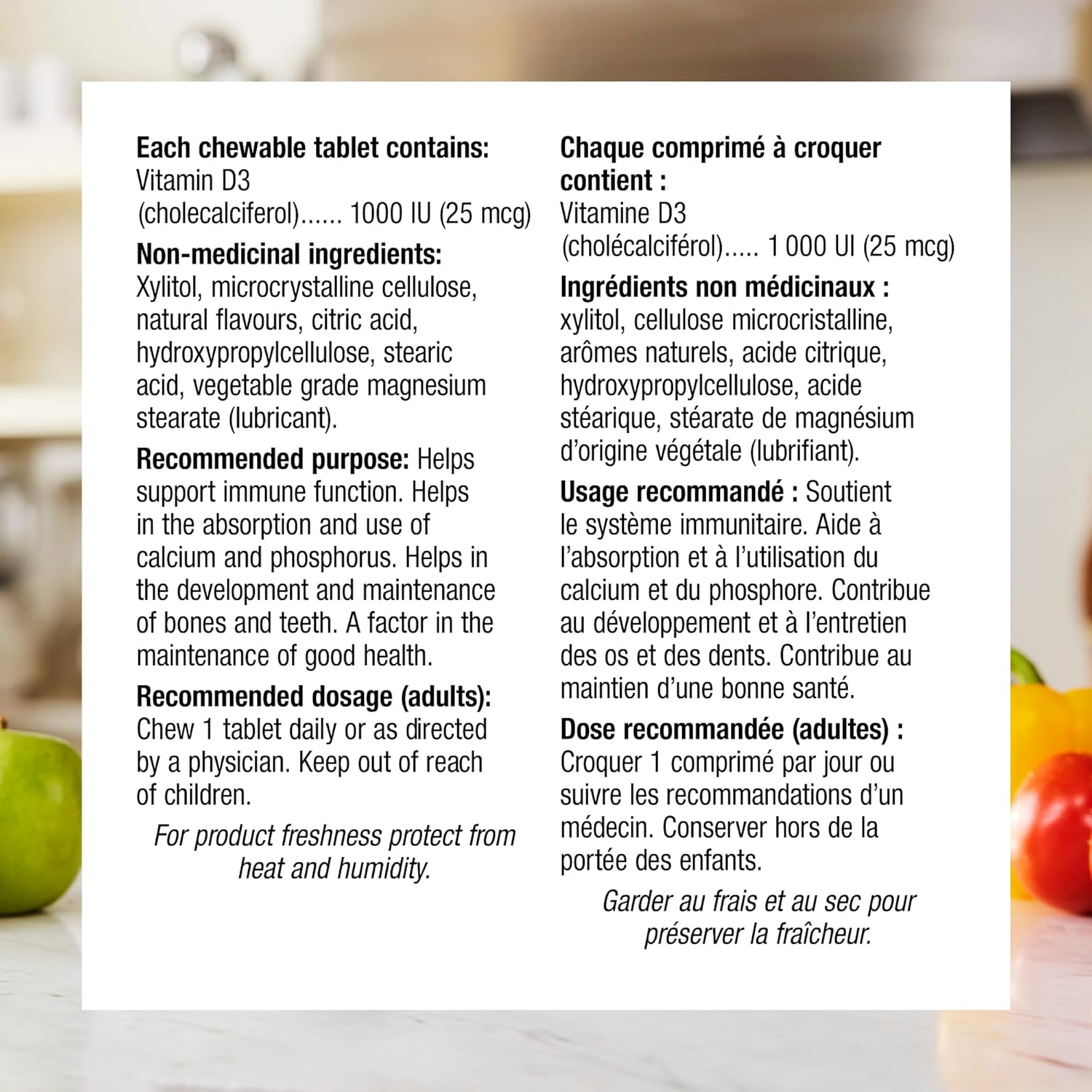Webber Naturals 维生素 D3 1000 IU,180 片橙味咀嚼片,有助于骨骼和牙齿健康,维持身体健康