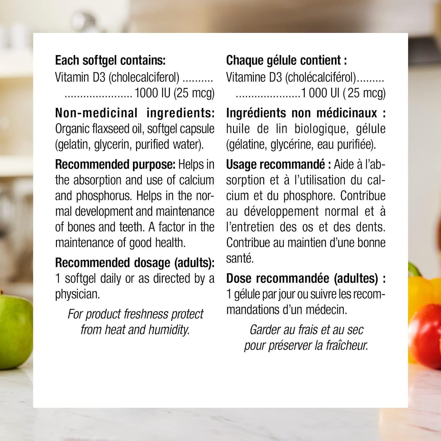 Webber Naturals 维生素 D3 1000 IU,500 粒软胶囊,有助于骨骼和牙齿健康,保持身体健康