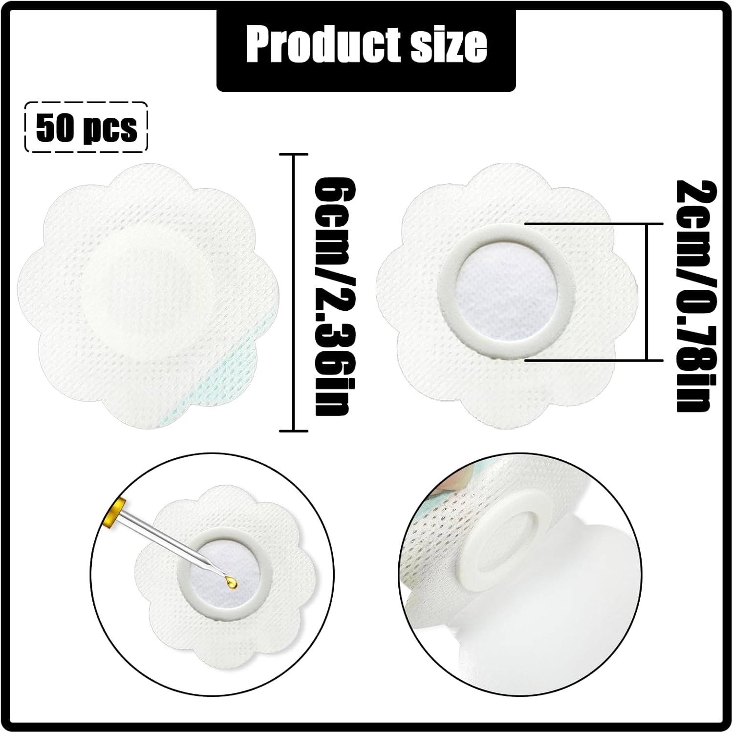 【透气舒适】我们的蓖麻油贴采用透气性极佳的无纺布制成,让您的皮肤自由呼吸,减少不适,保持皮肤清新自然。.【强力粘合剂】这些肚脐贴的粘性经过特殊设计,可以稳定地贴合皮肤,即使在活动期间也不易脱落,让您在日常生活中更加舒适。.【轻巧贴片】这些肚脐贴的轻薄设计使它们几乎看不见,不会影响您的日常着装。即使穿着紧身衣服,它们也能保持美丽,让您保持优雅。.【全天使用】无论是工作还是瑜伽,这款蓖麻油贴都能满足您的使用需求,也可以在睡觉时使用,而不必担心脱落或泄漏。它的多功能性使其成为您日常生活中的重要护理伙伴。.【一次性设计】您将收到 50 片高吸收性蓖麻油垫,尺寸为 6 x 6 厘米/2.36 x 2.36 英寸。一次性设计非常方便,无需清洗,简化了护理过程。