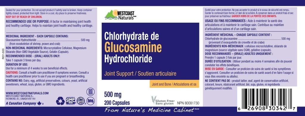 WESTCOAST NATURALS 盐酸氨基葡萄糖胶囊,200 粒