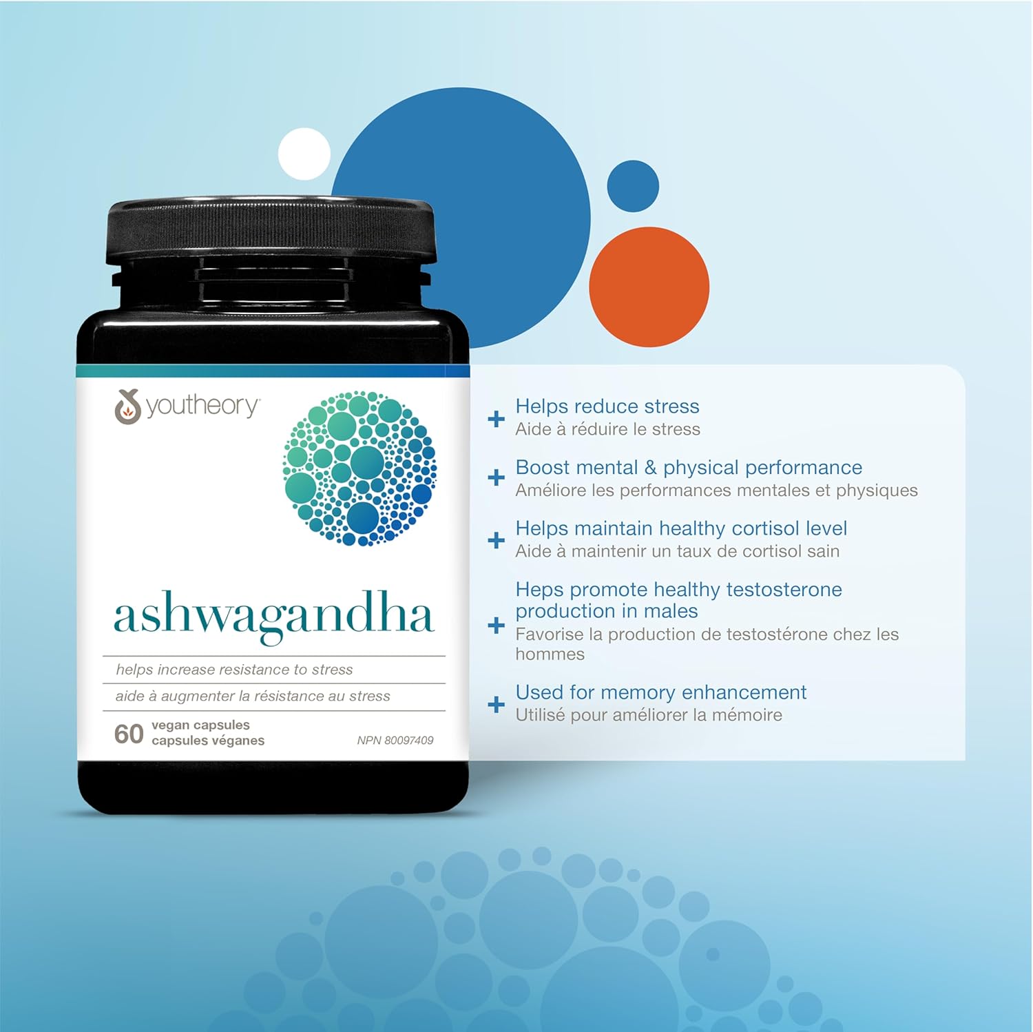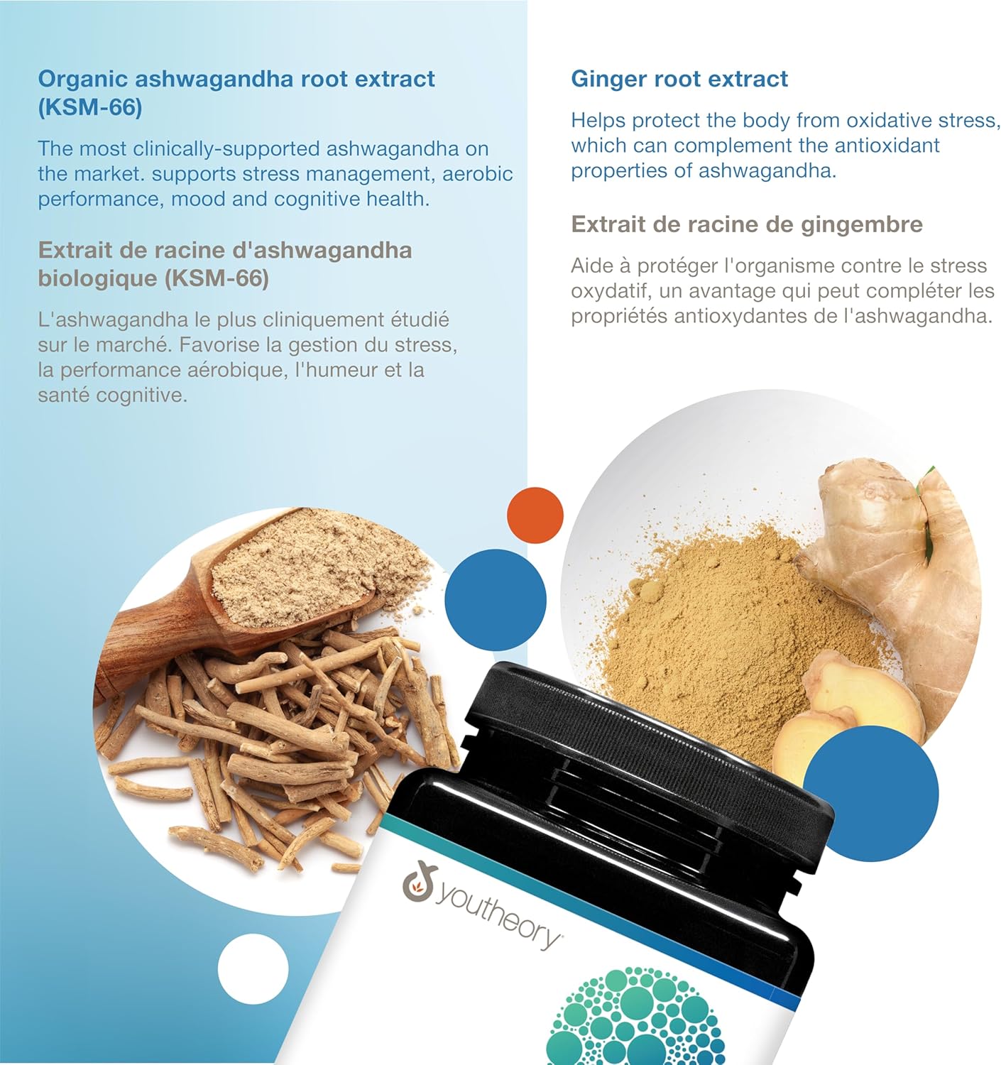 youtheory 南非醉茄采用 KSM-66® 配制而成,每份提供 1,000 毫克有机南非醉茄。