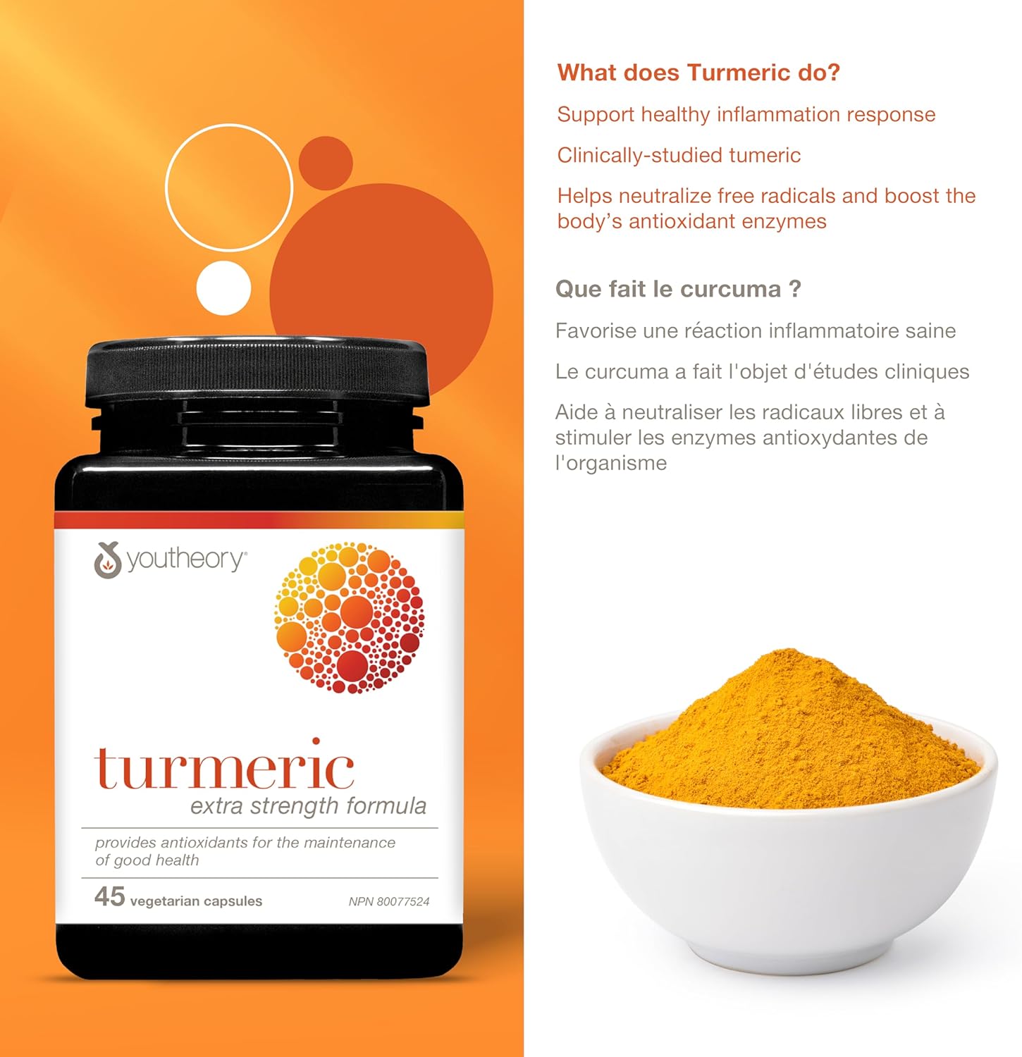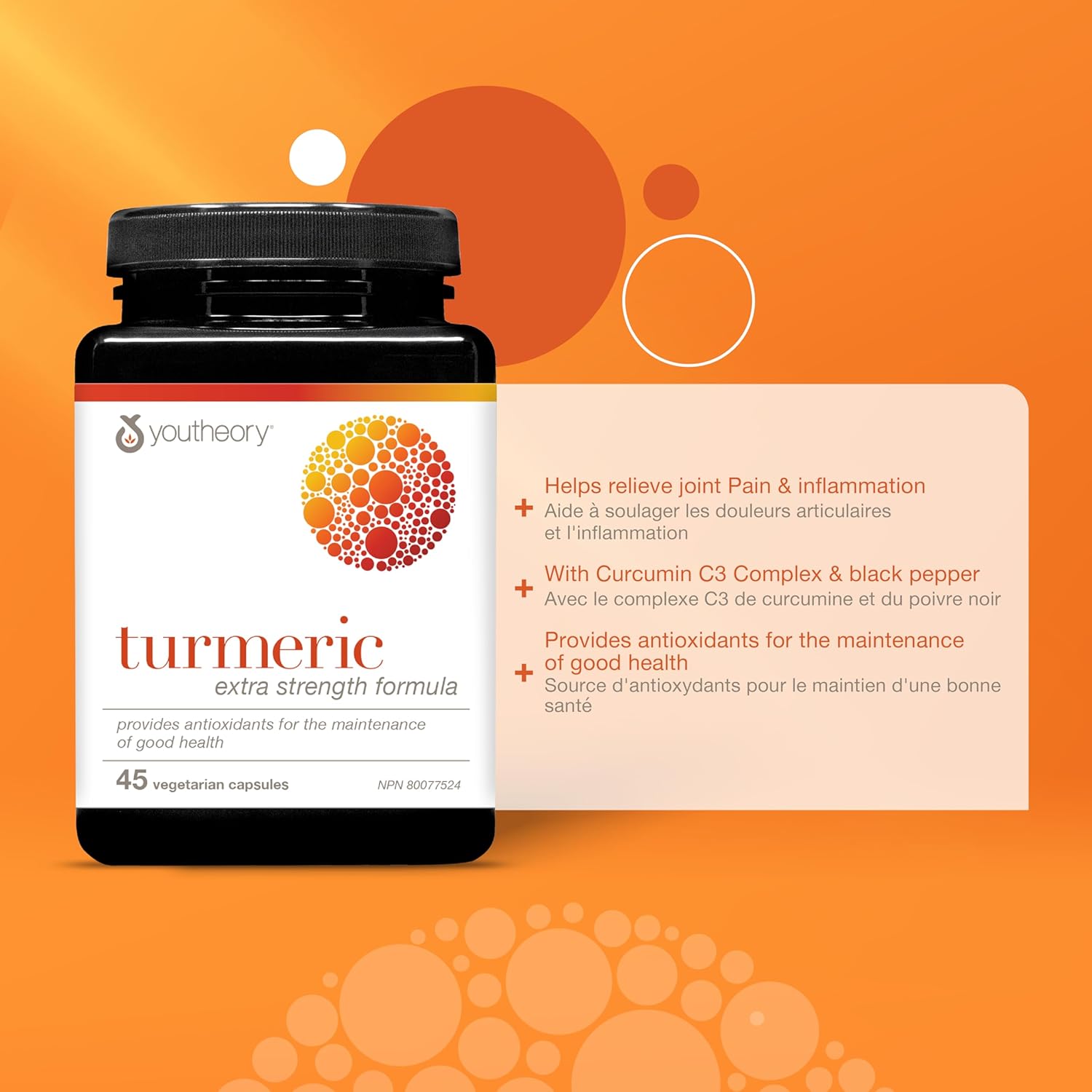 Youtheory 姜黄素与黑胡椒,强效抗氧化,有助于缓解关节炎症,45 粒胶囊