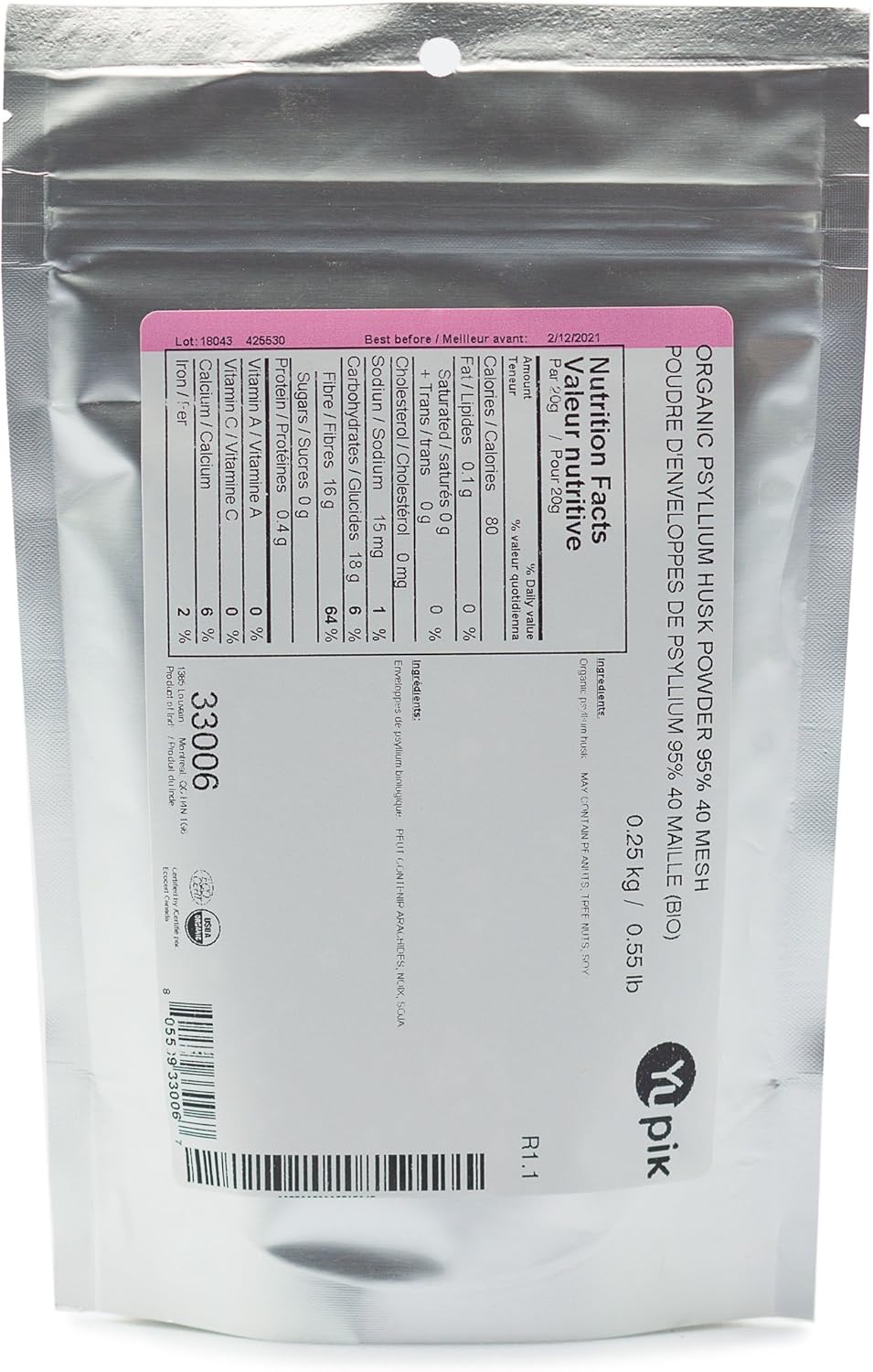 Yupik 有机洋车前子壳粉 250 克,纯度 95%,膳食纤维来源,经美国农业部认证,非转基因,纯素,无麸质,无味,植物基,粗磨洋车前子壳,烘焙和消化健康的理想选择