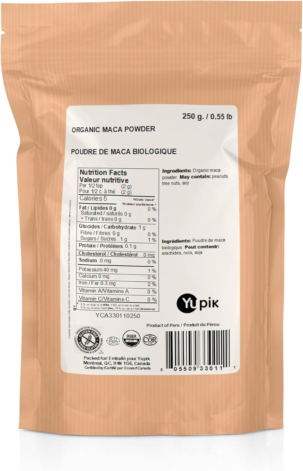 Yupik 有机黄玛卡粉 250 克,经美国农业部认证,无麸质,纯天然,纯素,犹太洁食,非转基因,坚果和泥土的超级食品,富含维生素、矿物质和氨基酸,适用于冰沙和烘焙食品
