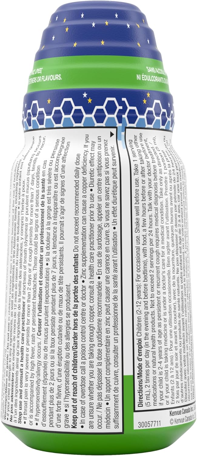 Zarbee’s® 儿童夜间止咳化痰糖浆(适用于 2 岁以上儿童),蜂蜜、洋甘菊和常春藤叶,不含色素和酒精,混合浆果味,118 毫升