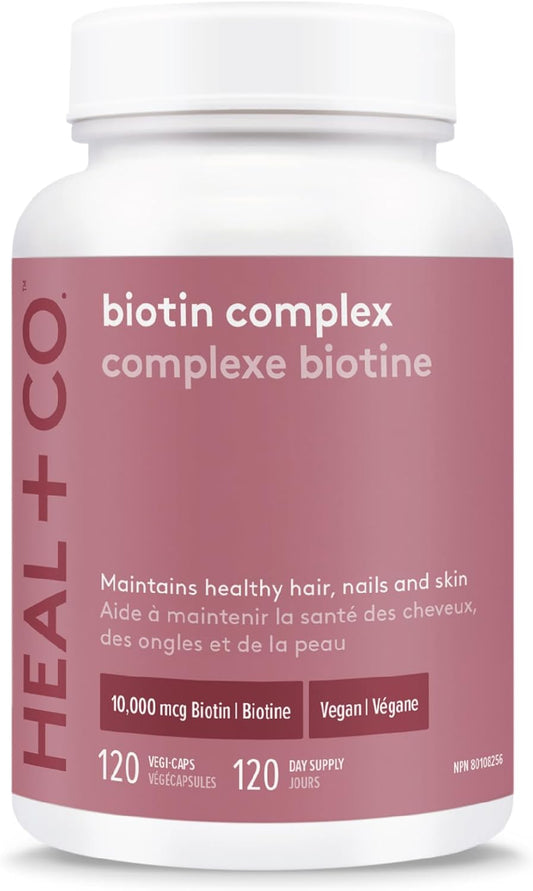 HEAL + CO. 生物素複合物 | 生物素、鈣、矽、鎂、維生素 D2 | 10,000 微克生物素補充劑 | 支持皮膚、頭髮和指甲健康 | 120 粒膠囊