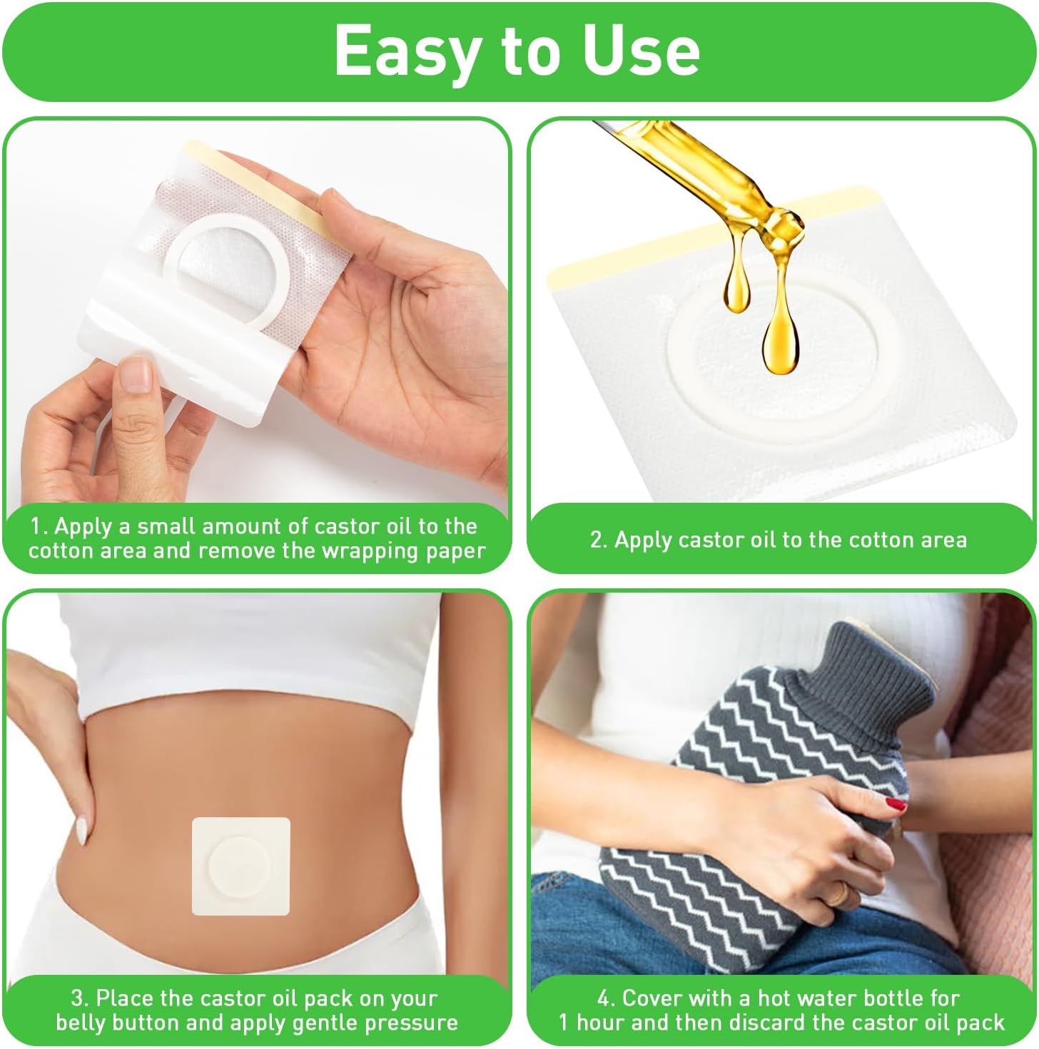 方便包裝:此套裝包括 100 個一次性蓖麻油肚臍貼片包,方便使用且清理乾淨。尺寸為 8 厘米 * 8 厘米,大面積可覆蓋更多地方。高吸收性:這些墊子由有機棉製成,可有效吸收和保留蓖麻油,促進更好的消化。自黏設計:墊子採用自黏背襯,確保牢固地放置在肚臍區域。防滲結構:墊子設計用於防止洩漏,將油保持在墊子內。易於使用:只需將墊子放在肚臍區域並在使用後丟棄,無需清洗。