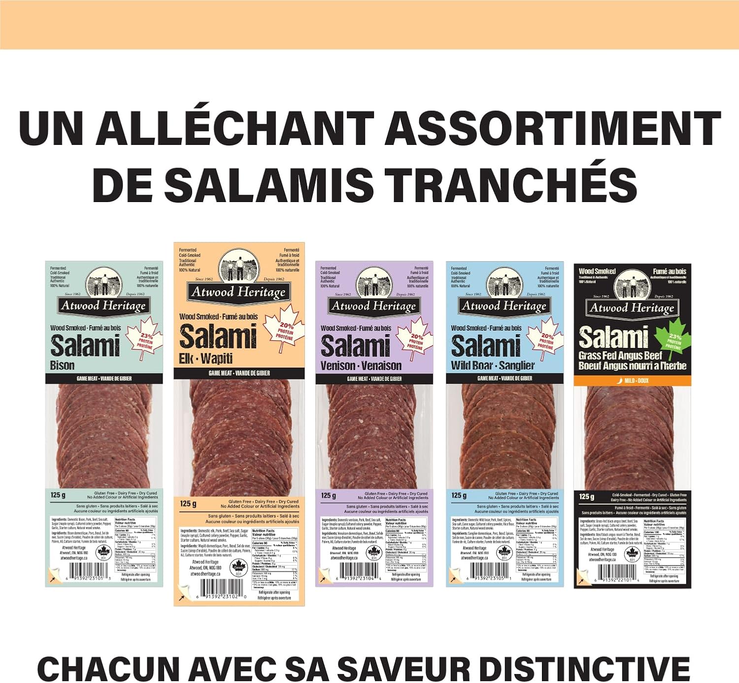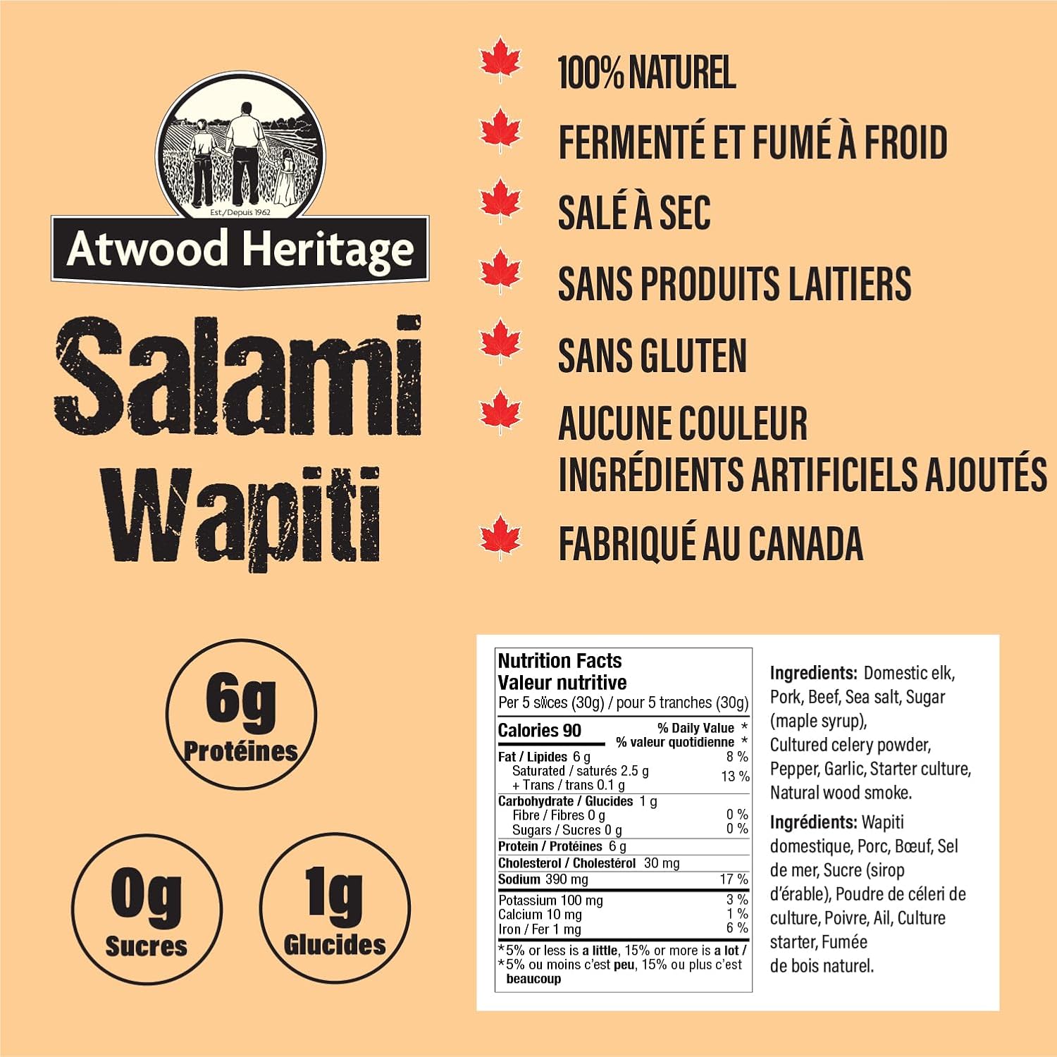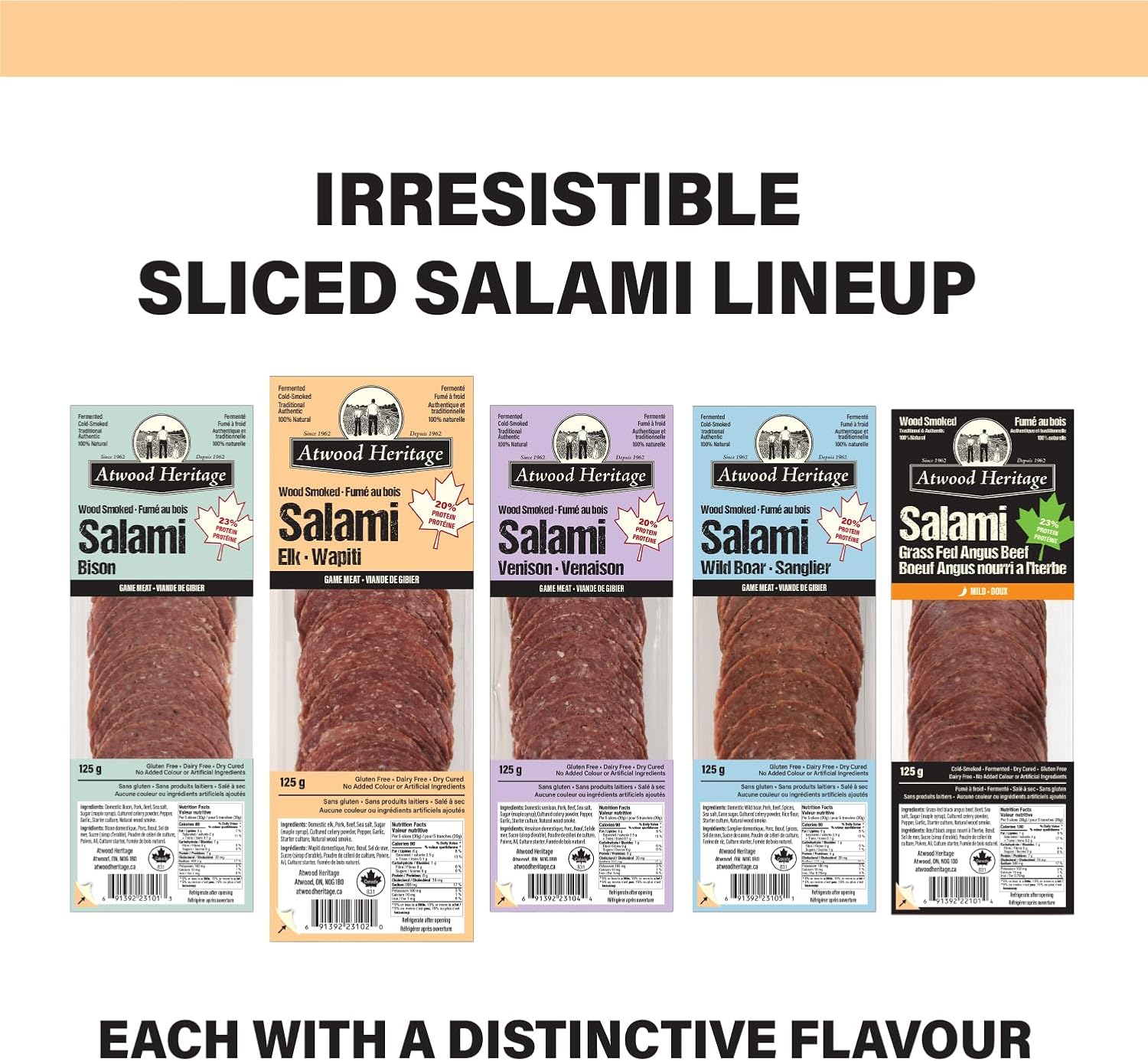 Atwood Heritage 野味切片薩拉米 – 麋鹿肉 – 125 克 – 6 克蛋白質,天然發酵,冷熏,生酮友好,無麩質,耐儲存,加拿大製造