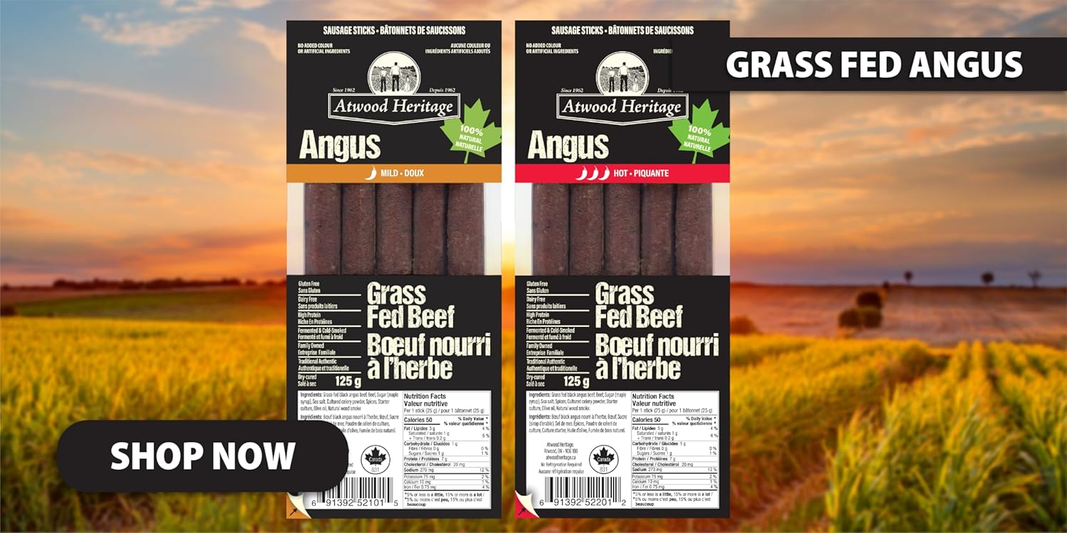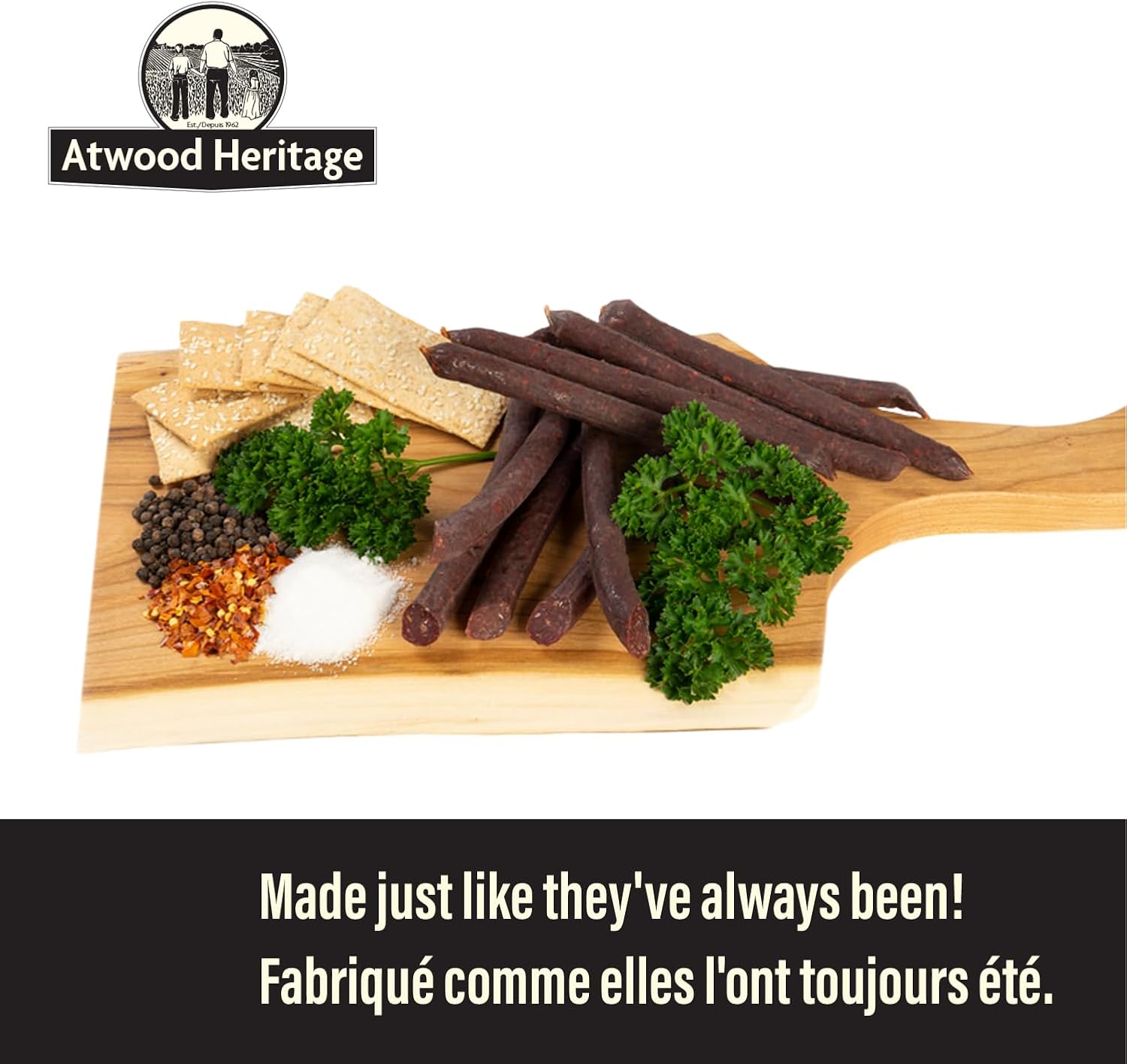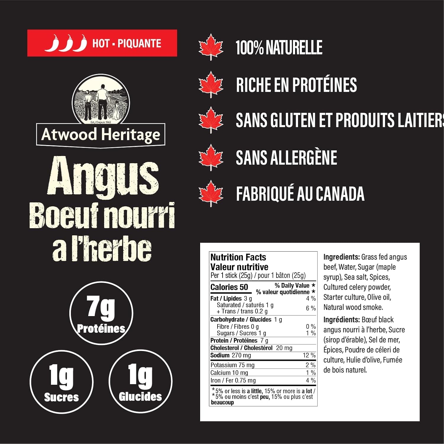 Atwood Heritage 草飼安格斯牛肉香腸零食棒 - 5 包(125 克)- 7 克蛋白質,自然發酵,冷熏,生酮友好,無麩質,耐儲存,加拿大製造 - 辣味