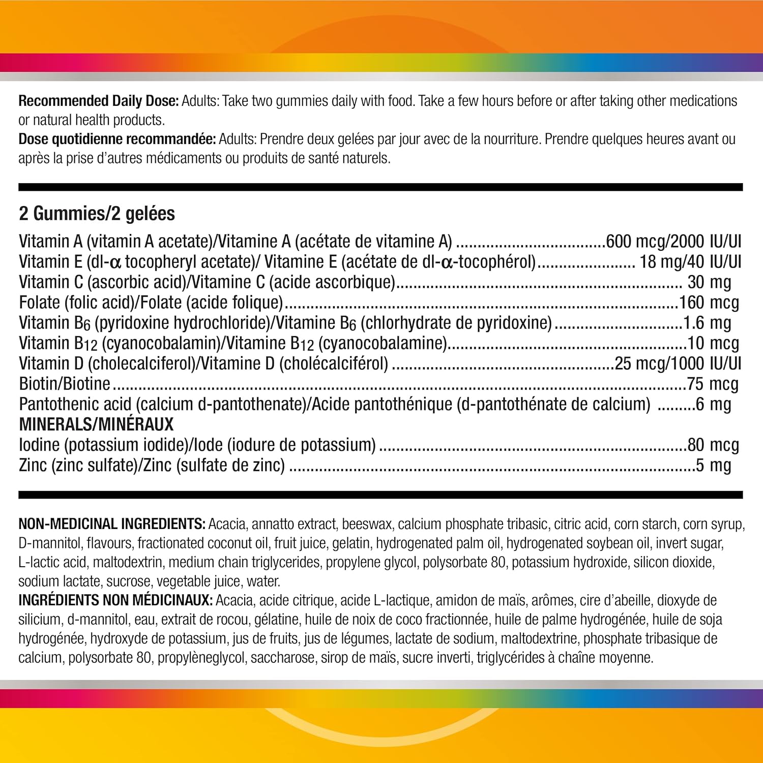Centrum 成人複合維生素軟糖專為尋求美味維生素補充方式的成年人配製,幫助滋養細胞,補充能量。 Centrum 成人複合維生素軟糖美味可口,每天只需兩粒軟糖即可增強免疫系統,維持身體代謝營養物質的能力,並提供抗氧化劑。 Centrum 成人複合維生素軟糖不含麩質,其維生素和礦物質配方可從內部滋養您的身體,支持身體健康。憑藉超過 35 年的營養科學專業知識,Centrum 是加拿大排名第一的醫生推薦複合維生素品牌*和銷量第一的複合維生素品牌**。此包裝包含一瓶 150 粒裝的 Centrum 成人複合維生素軟糖,有櫻桃、漿果和橙子口味可供選擇。 (*基於 2020 年 3 月的 IMS Health 數據;**Centrum 計算部分基於尼爾森透過其市場追蹤服務報告的截至 2020 年 10 月 31 日的 52 週期間成人維生素類別的數據)