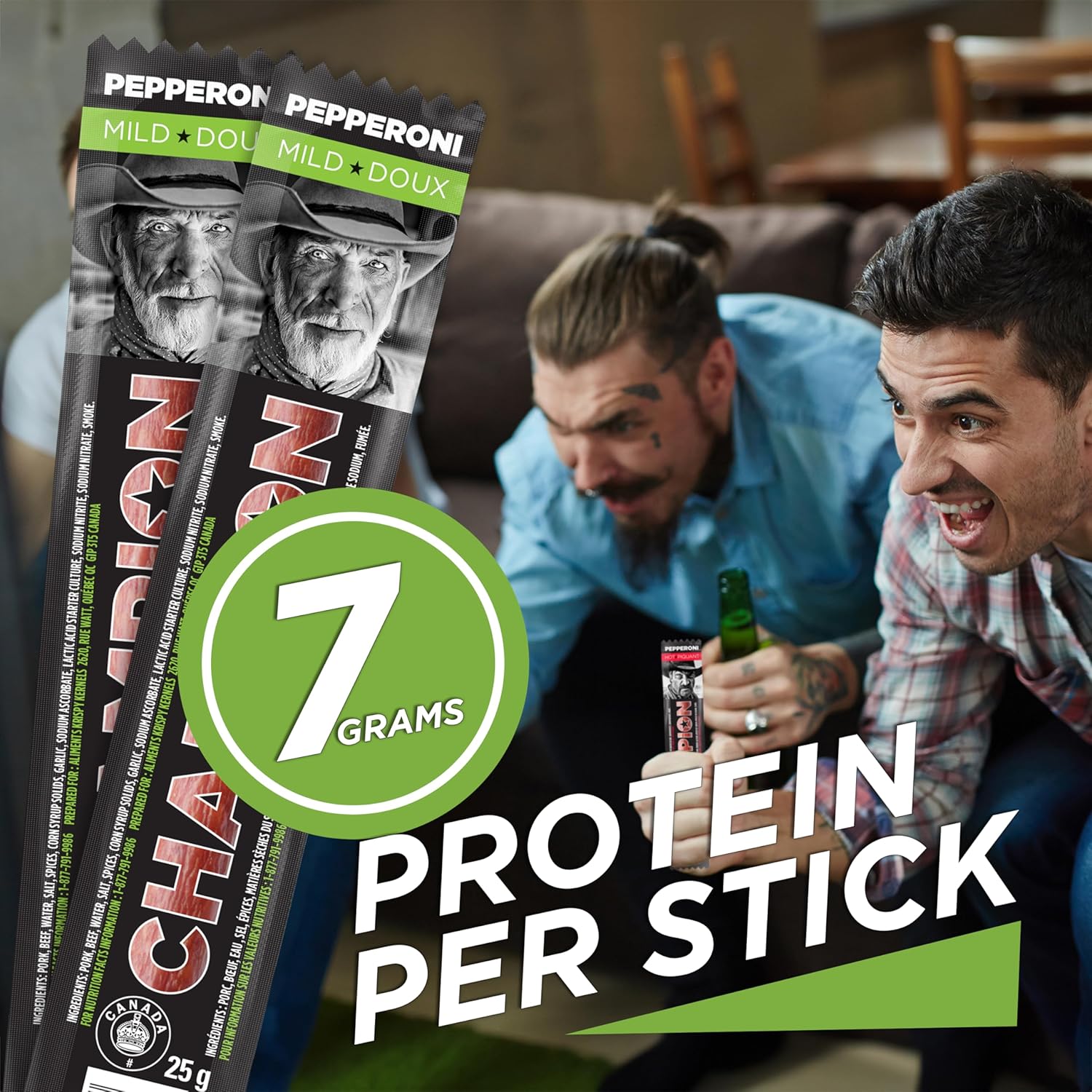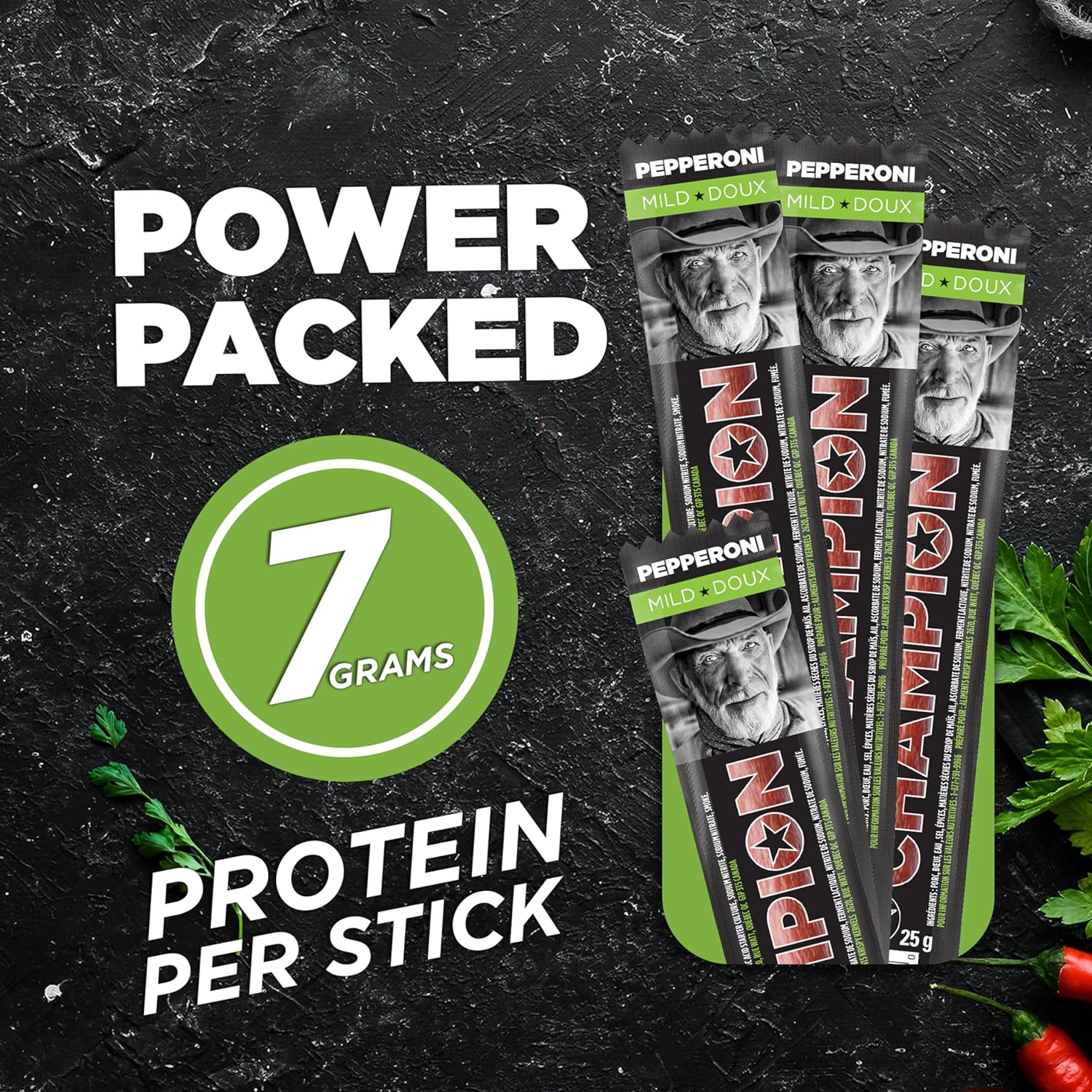 Champion 義大利辣香腸條,獨立包裝,口味溫和的辣香腸肉條,完美的午餐小吃,肉條,加拿大製造 - 24 根裝