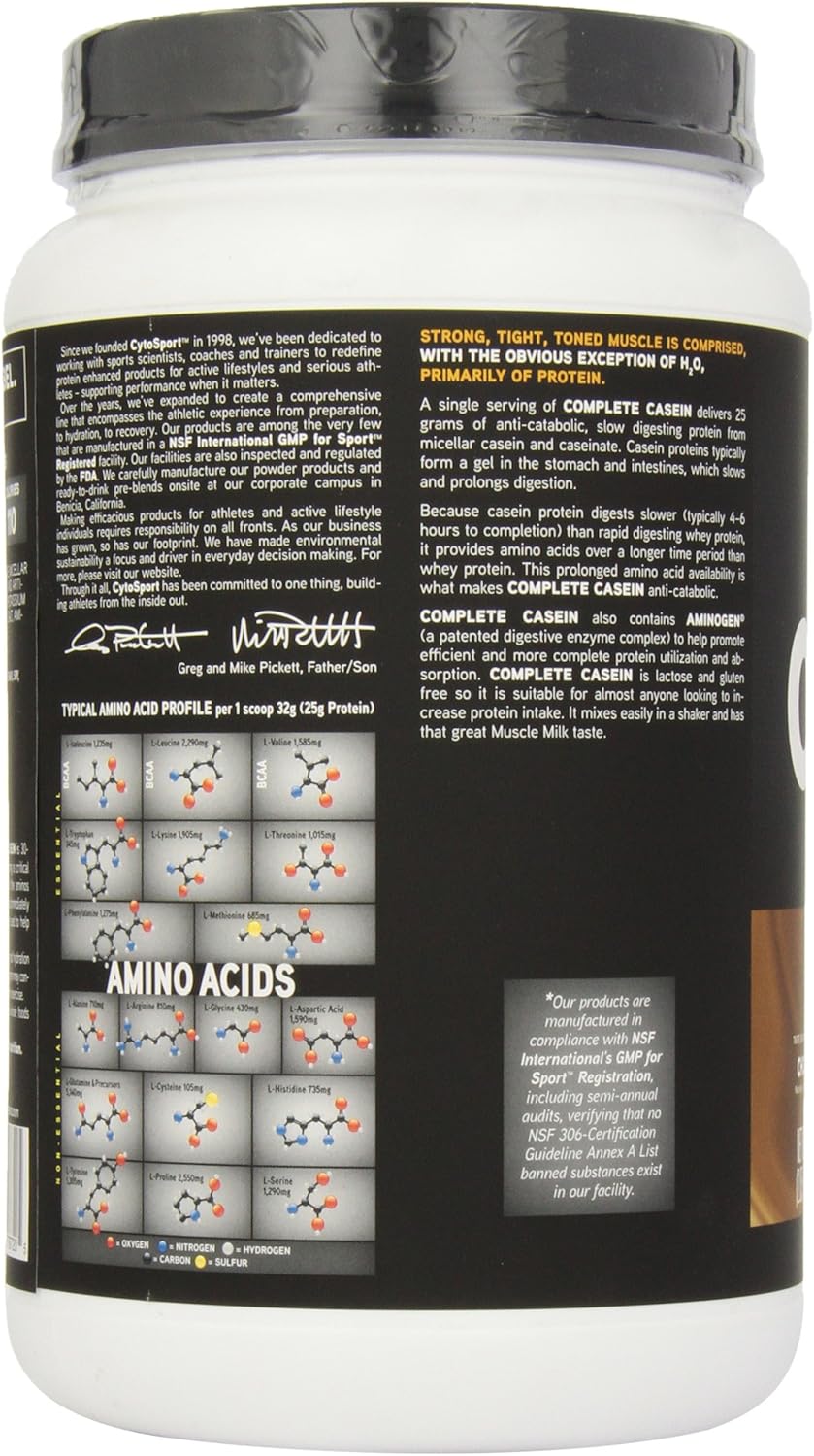 每份完整酪蛋白含有 25 克抗分解代謝慢消化蛋白質,由膠束酪蛋白和酪蛋白酸鈣和酪蛋白酸鈉組成。
