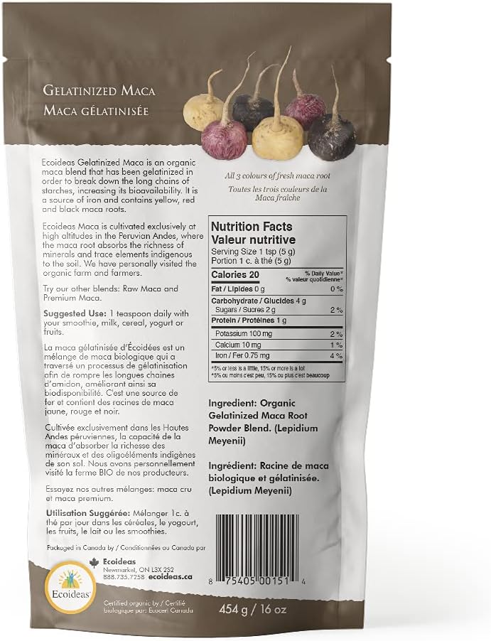 瑪卡有時被稱為“秘魯人參”,因其營養價值極高而備受印加人推崇。瑪卡是一種適應原,以其增強能量、增強體力、改善情緒、緩解焦慮和提升性慾的功效而聞名。它富含必需礦物質、必需脂肪酸 (EFA)、氨基酸和多醣。瑪卡根含有超過55種天然存在的有益植物化學物質,與人體的自然節律協同作用。瑪卡根有助於重建虛弱的免疫系統,補充營養不良的身體礦物質,並增強能量和耐力。