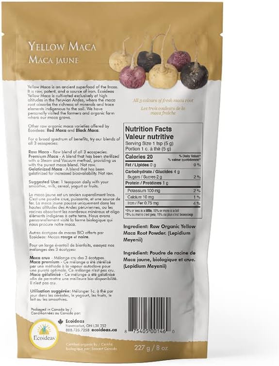 瑪卡有時被稱為“秘魯人參”,因其營養價值極高而備受印加人推崇。瑪卡是一種適應原,以其增強能量、增強體力、改善情緒、緩解焦慮和提升性慾的功效而聞名。它富含必需礦物質、必需脂肪酸 (EFA)、氨基酸和多醣。瑪卡根含有超過55種天然存在的有益植物化學物質,與人體的自然節律協同作用。瑪卡根有助於重建虛弱的免疫系統,補充營養不良的身體礦物質,並增強能量和耐力。