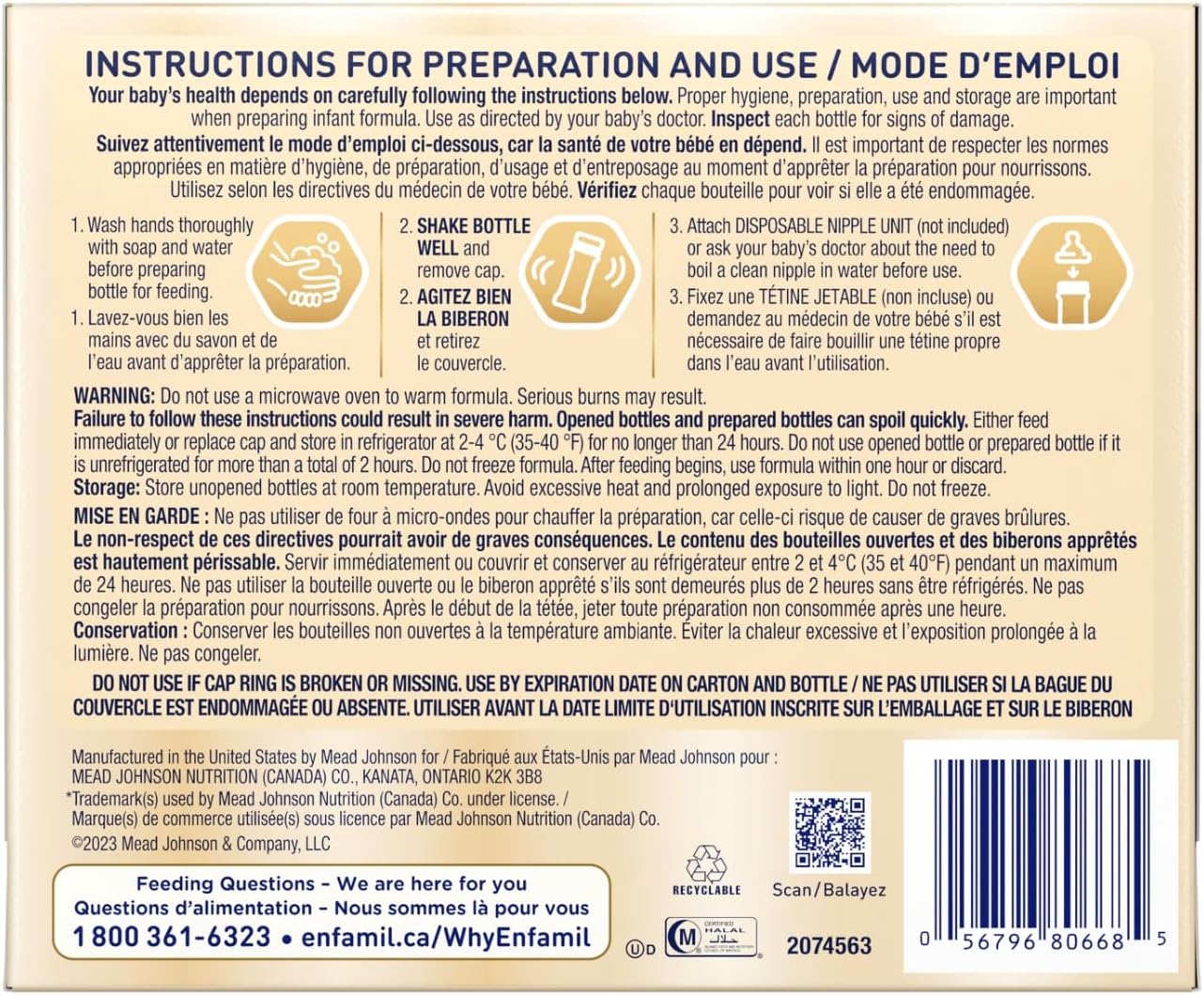 Enfamil A+ NeuroPro 嬰兒配方奶粉,即食配方,含促進大腦發育的 DHA 和 2'FL 以增強免疫力,0-12 個月,6 x 59 毫升