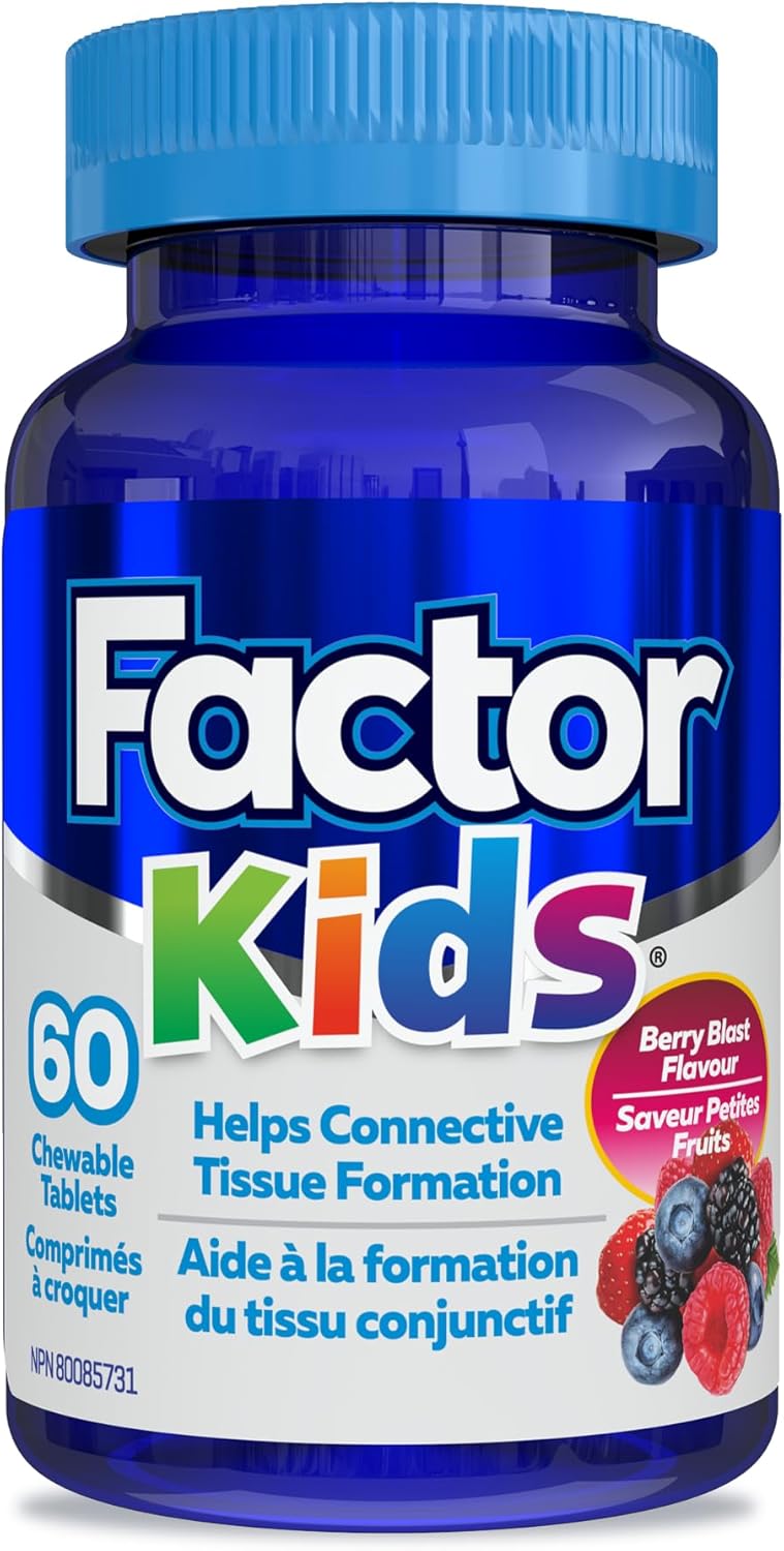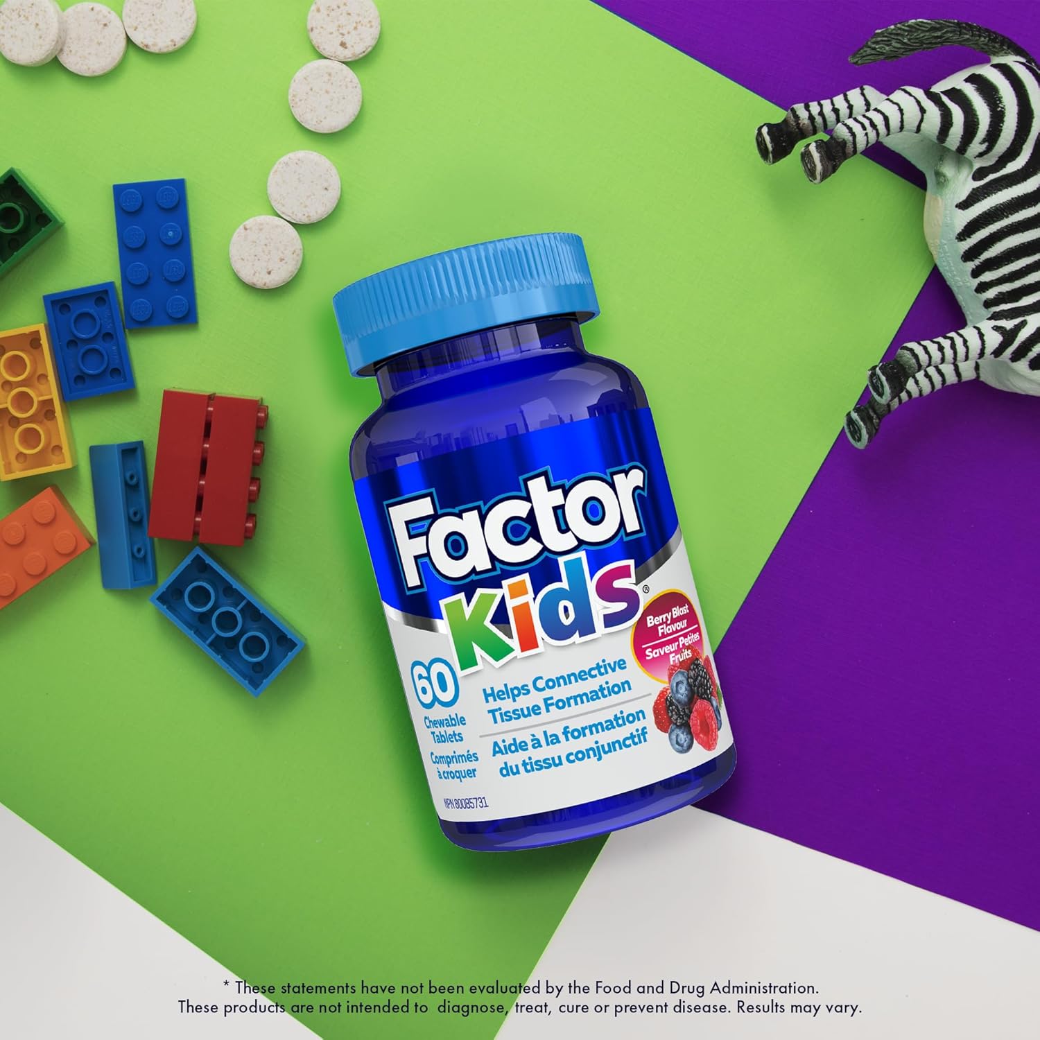 Factor 兒童每日咀嚼複合維生素(60 顆),含維生素 B12、C、D3 和 L-酪胺酸