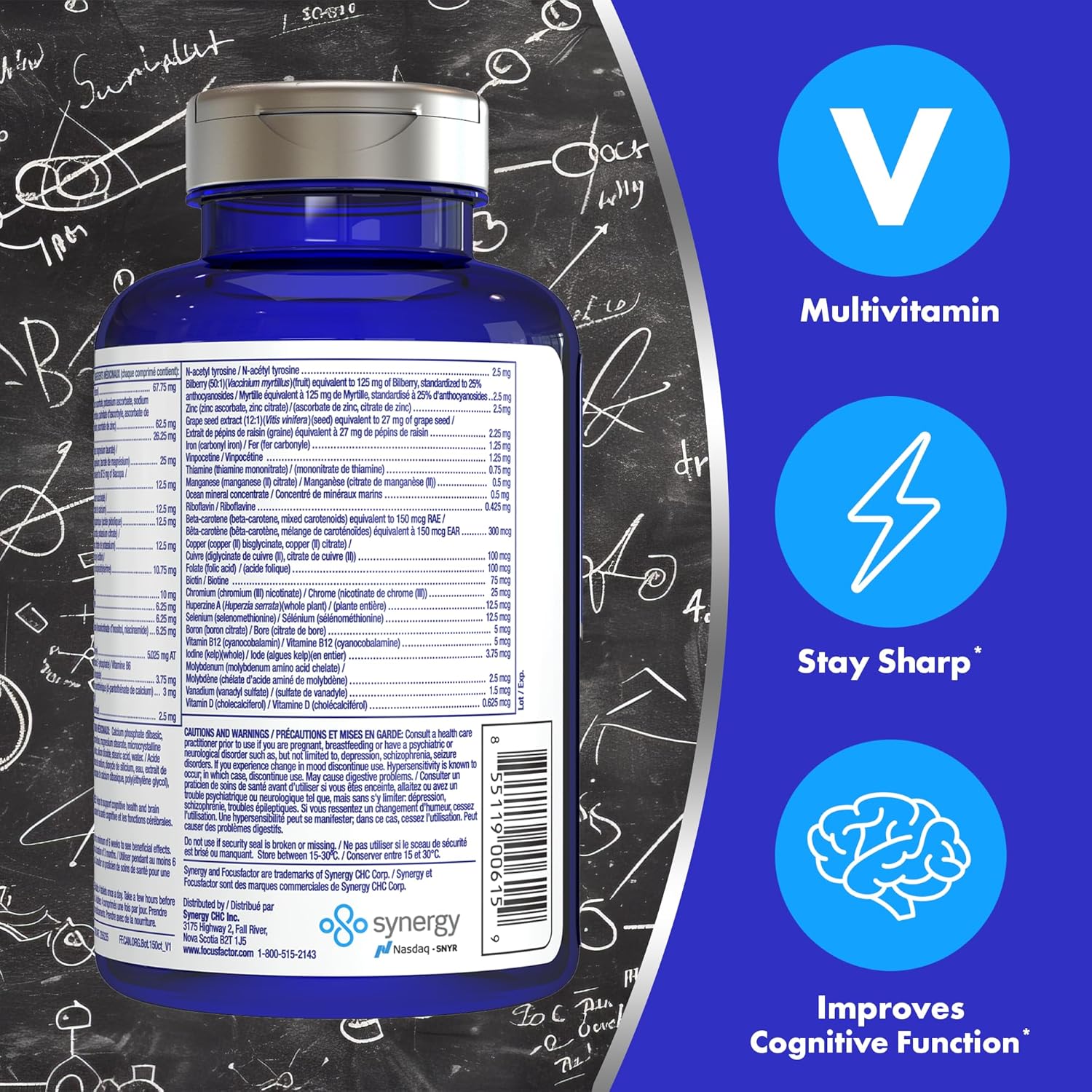 Focus Factor 大腦補充劑和完整複合維生素(150 粒),含鋅、鎂、維生素 B6、B12、D、假馬齒莧和 N-乙醯酪氨酸,支持認知功能和大腦健康