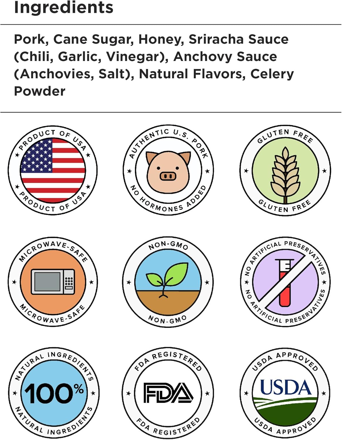 全天然、健康零食:全天然成分,高蛋白、低脂、低碳水化合物、低卡路里、不含味精、不含防腐劑、不含硝酸鹽、無麩質、低糖含量、優質全肌肉 USDA 認證的美國飼養無激素豬肉。營養豐富:9 克蛋白質讓您保持飽腹感、專注力和精力充沛,同時滿足您對多汁美味肉乾的渴望。多汁的燒烤口味:獨特的明火燒烤和釉料工藝,可顯著減少不良脂肪含量,同時鎖住天然肉汁,讓每一口都最大限度地保留美味。高蛋白、低脂肪零食:為您提供補充肌肉和最大限度提高運動效果所需的蛋白質和能量。深受運動員、健美運動員、CrossFit、拳擊、游泳、網球、足球、橄欖球、籃球、棒球和所有其他運動愛好者的喜愛。