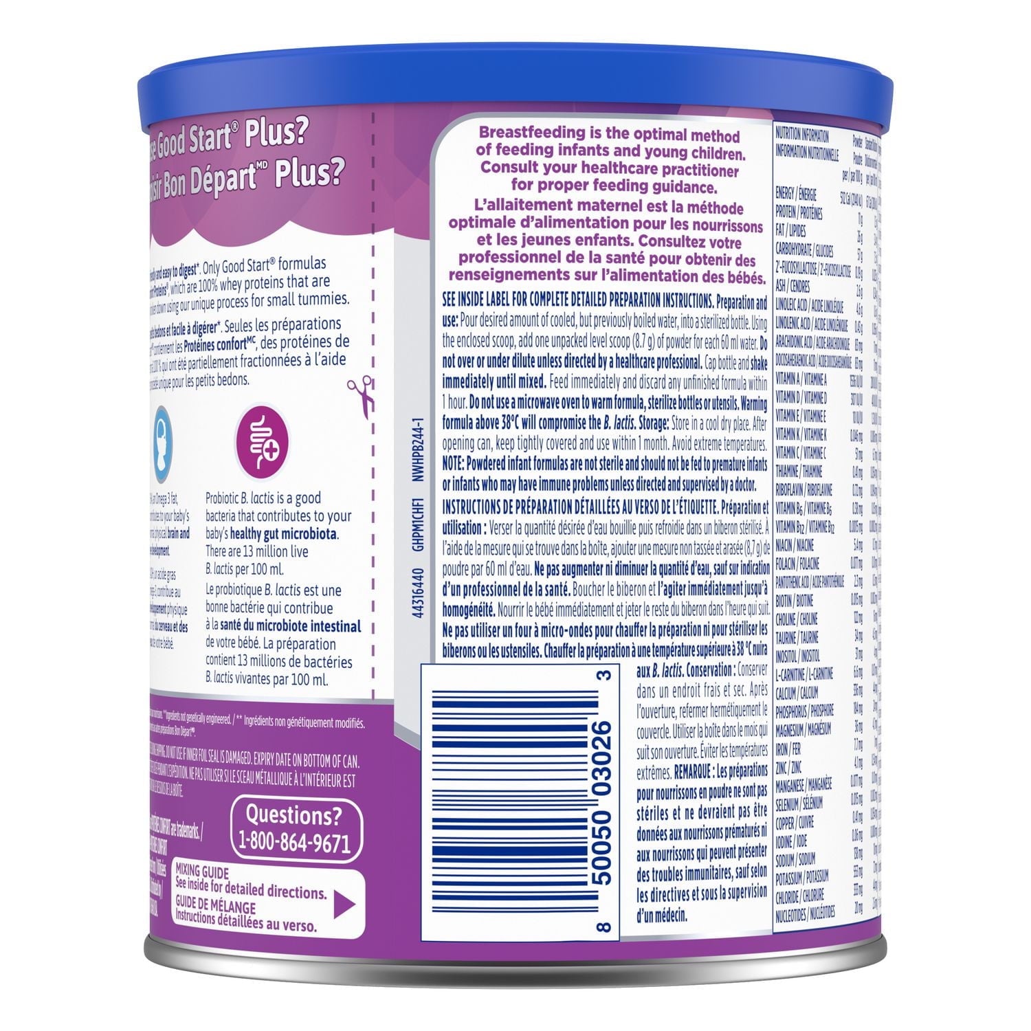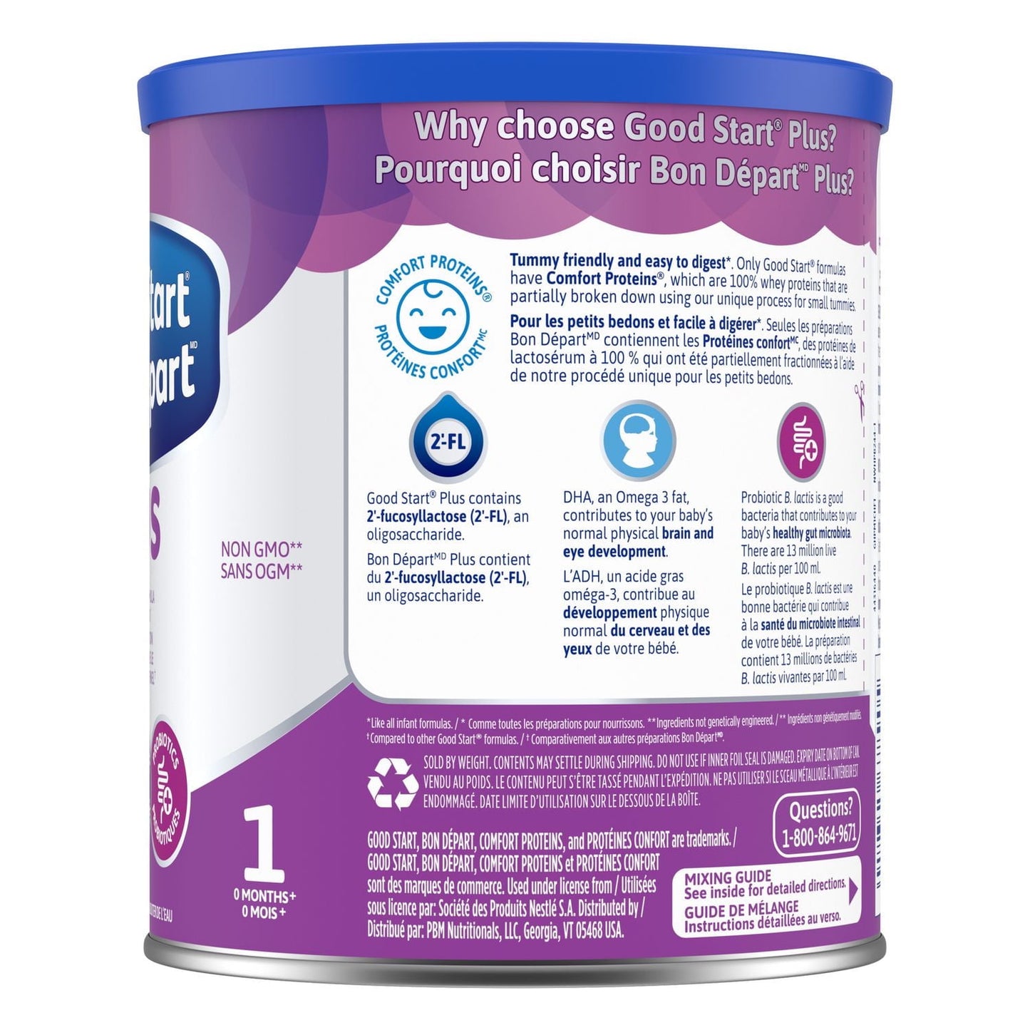 GOOD START 是兒科醫師的首選,是最容易被寶寶消化的配方奶粉。 *我們的配方與母乳最接近,GOOD START PLUS 1 嬰兒配方奶粉易於消化**,並含有舒適的蛋白質,100% 乳清蛋白,使用我們獨特的工藝部分分解,適合小肚子。這種嬰兒配方奶粉還含有 DHA,一種支持嬰兒大腦和眼睛發育的 Omega-3 脂肪。這種奶粉配方中的益生菌乳雙歧桿菌和 2'-FL(一種寡糖)有助於支持嬰兒正在發育的免疫系統和腸道健康。