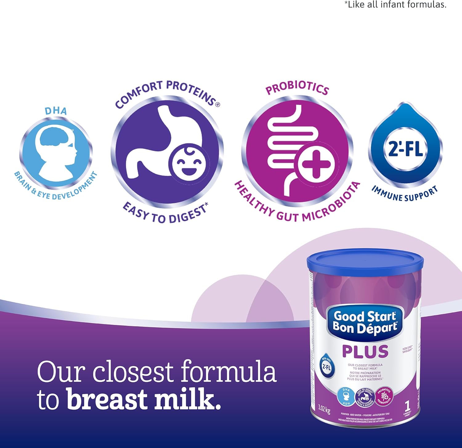 GOOD START PLUS 1 嬰兒配方奶粉,易於消化,含有促進大腦和眼睛發育的 DHA、益生菌和 2'-FL,粉末,1.02 公斤