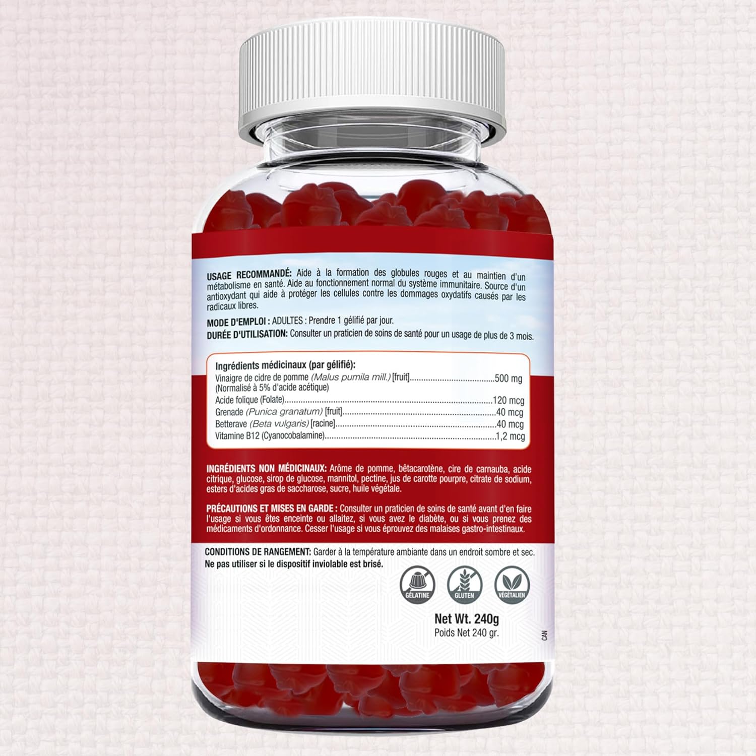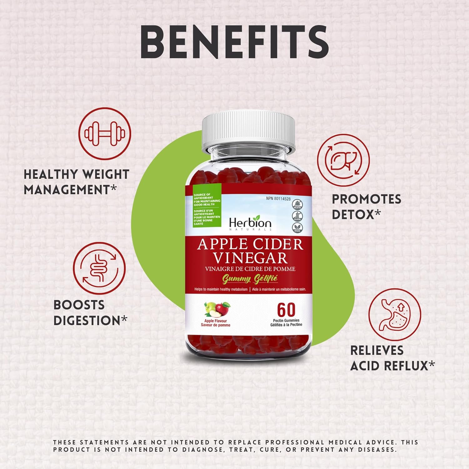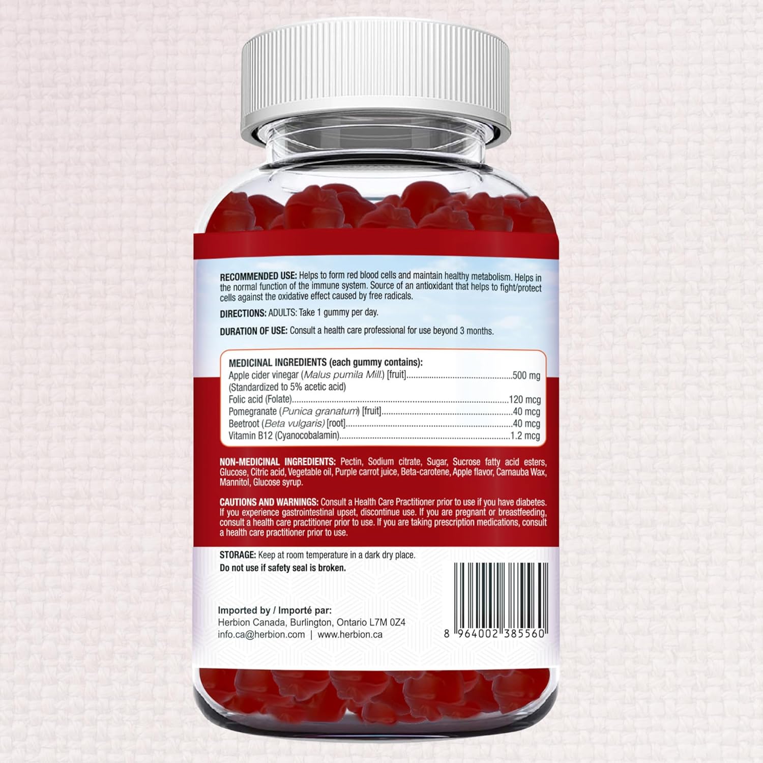 Herbion Naturals 蘋果醋軟糖,含葉酸、石榴、甜菜根和維生素 B12,是維持身體健康和新陳代謝的抗氧化劑來源,成人適用,60 粒果膠軟糖,蘋果味