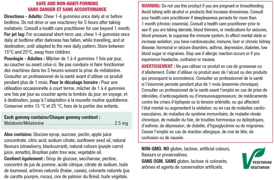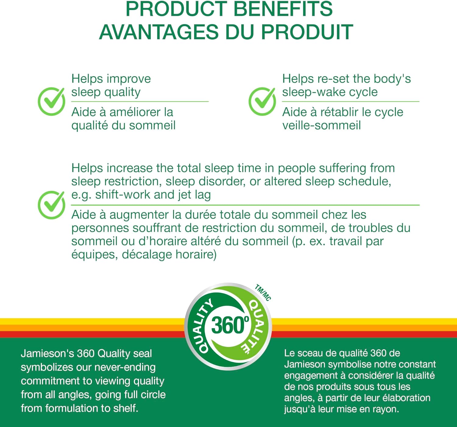 Jamieson 褪黑素軟糖方便又美味,天然呵護健康睡眠。每粒軟糖富含 2.5 毫克褪黑素,這是一種安全無毒且不易成癮的天然助眠劑。褪黑素有助於恢復最佳睡眠模式,並緩解時差反應。