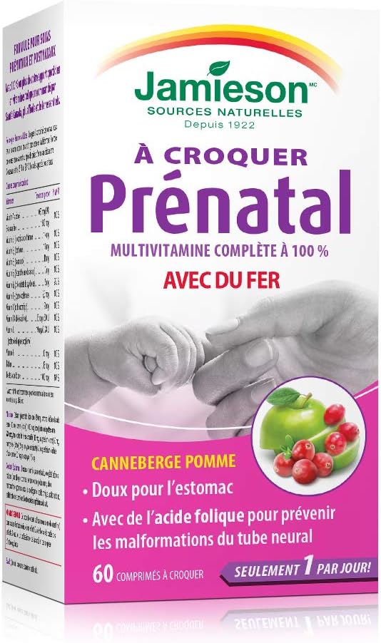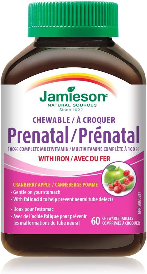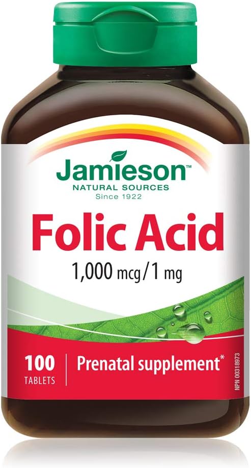 Jamieson 產前咀嚼片 60 片裝 Jamieson 100% 全效產前複合維生素咀嚼片是加拿大首款產前複合維生素咀嚼片,每天只需一粒,即可提供孕婦所需 100% 或更多的維生素!它還富含鐵、碘和葉酸,確保孕婦和哺乳期母親獲得維持寶寶整體健康所需的必需營養素。 Jamieson 葉酸 1000 微克 100 片裝 Jamieson 葉酸 1000 微克 1 毫克。對於計劃懷孕的女性來說,葉酸是一種重要的營養素,有助於降低懷孕期間神經管缺陷的風險。
