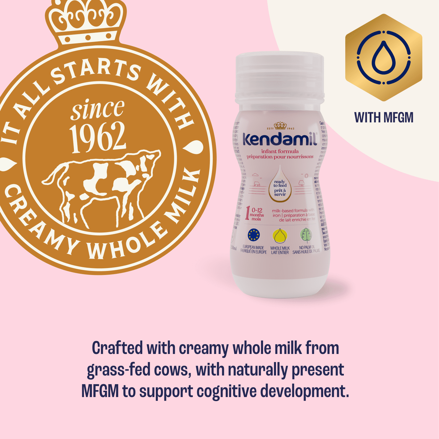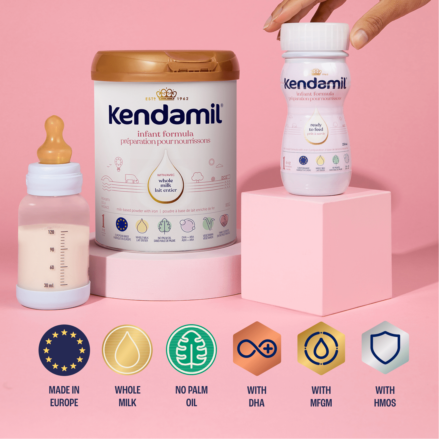 準備更少,享受更多精彩。隨時隨地。 Kendamil 經典即食奶粉專為安全、便利和日常時刻而設計—無論居家、外出或夜間餵奶。無需攪拌,無需稱量,輕鬆無壓力。只需打開,倒入您最喜歡的奶瓶,即可餵奶。這種方便攜帶的配方讓餵奶變得簡單,同時也為寶寶提供最優質的營養。 • 無菌安全:從第一天起就值得新生兒信賴 • 即用型:無需水或奶粉 • 便攜實用:非常適合旅行和外出 • 節省時間:簡化餵養,讓您可以專注於建立親子關係 • 非常適合夜間餵養:對於疲憊的父母來說快速簡便 • 奶油味十足,有益健康:採用全脂乳乳糖和 100% 乳汁不含棕櫚油、不添加大豆或玉米糖漿 • HMO、GOS 和 FOS 的益生元混合物有助於支持健康的免疫系統 • 植物性 DHA 和 ARA 有助於大腦和視力發育 • 適合更多家庭:素食、猶太潔食和清真認證 • 屢獲殊榮的手工品質 Kendamil 自 1962 年以來一直是歐洲的家族企業和製造的。 60 多年來,我們家族一直致力於透過我們標誌性的全脂牛奶配方來提高嬰兒配方奶粉的標準。