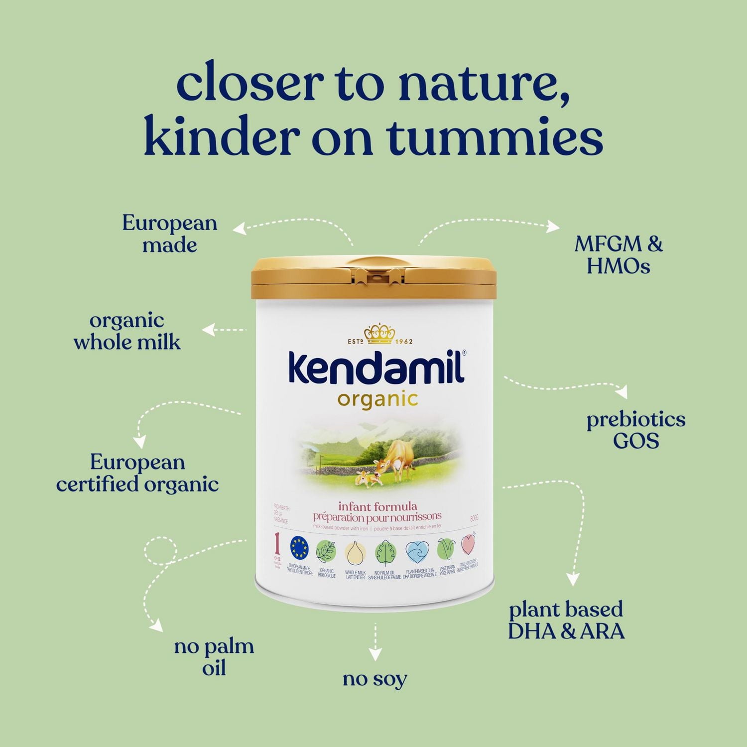 您好,我們是肯多蜜兒 (Kendamil),我們是一家自豪的家族企業,自 1962 年以來在歐洲生產。 60 多年來,我們家族一直致力於透過我們標誌性的全脂牛奶配方提高嬰兒配方奶粉的標準。肯多蜜兒有機嬰兒配方奶粉僅採用最優質和可持續來源的有機原料,從天然全脂牛奶脂肪(存在於母乳中,並被證實有助於認知發育)和來自草飼奶牛的乳糖開始 - 取代棕櫚油、大豆和玉米糖漿,同時創造出更接近母乳且天然健康的天然乳脂配方。肯多蜜兒有機嬰兒配方奶粉富含獨特的 HMO 和 GOS 益生元混合物,有助於支持健康的免疫系統。它還包含植物性 DHA(Omega-3)和 ARA(Omega-6),有助於大腦和視力發育。我們屢獲殊榮的配方符合歐洲和美國制定的嬰兒配方奶粉最高標準,保證為您的家庭提供卓越的品質。認證:素食、猶太潔食和清真 MFGM:乳脂肪球膜 HMO:人類乳寡糖(3’-GL、4’-GL、6’-GL)