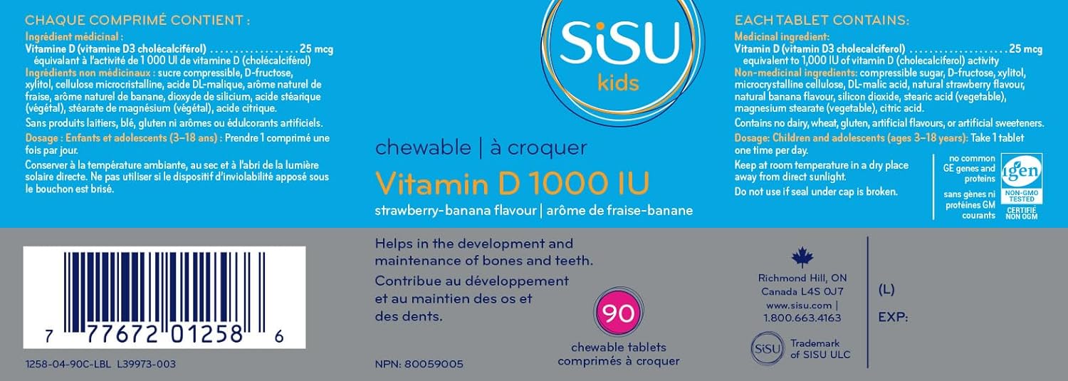 美味的草莓香蕉口味藥片,可提供 1000 IU 維生素 D