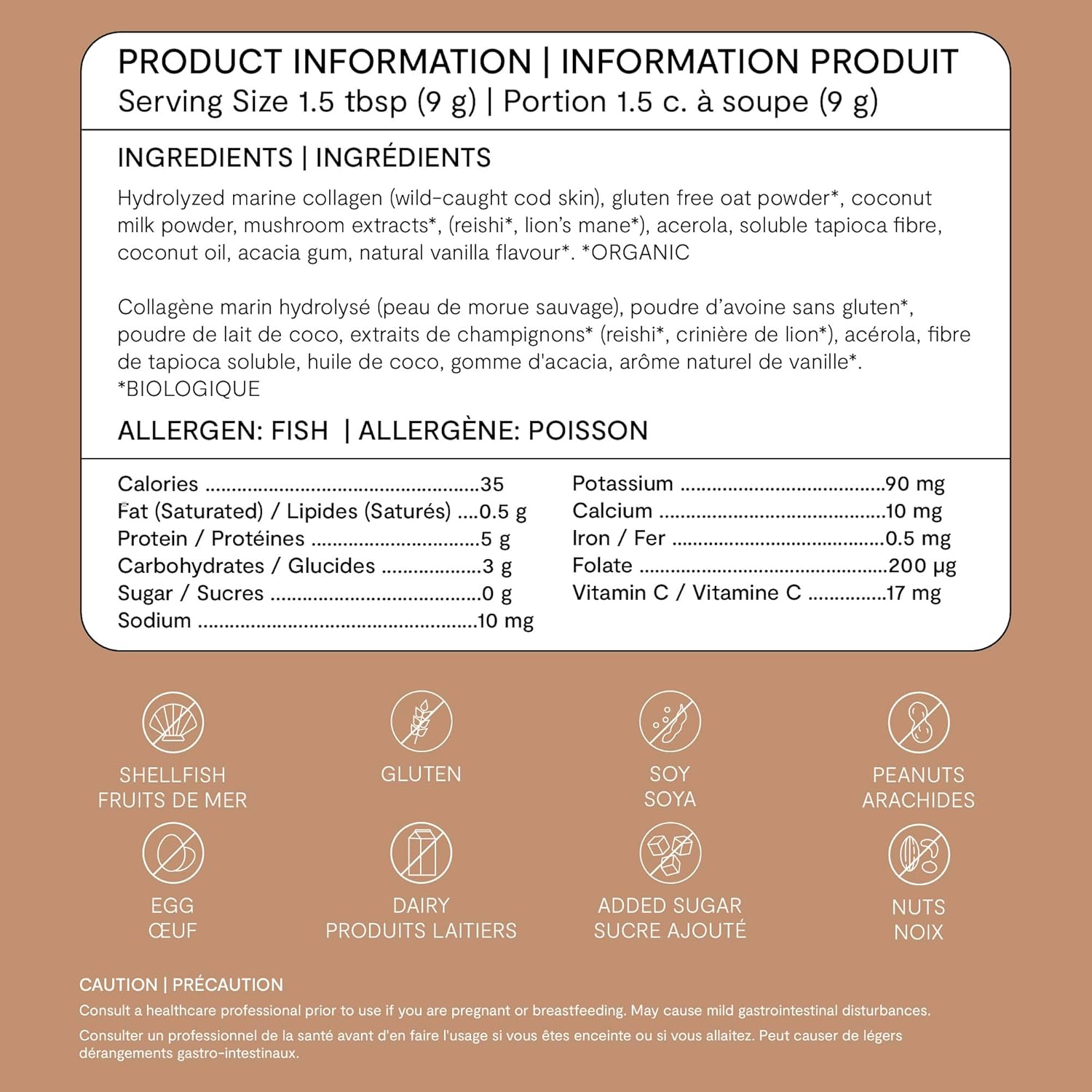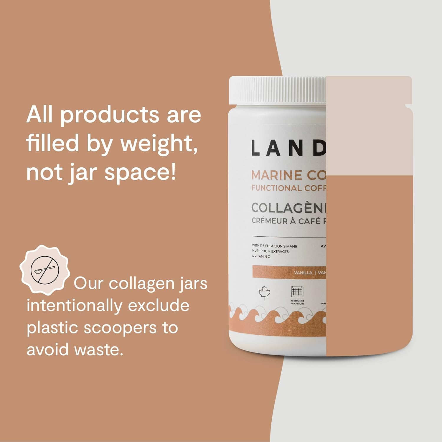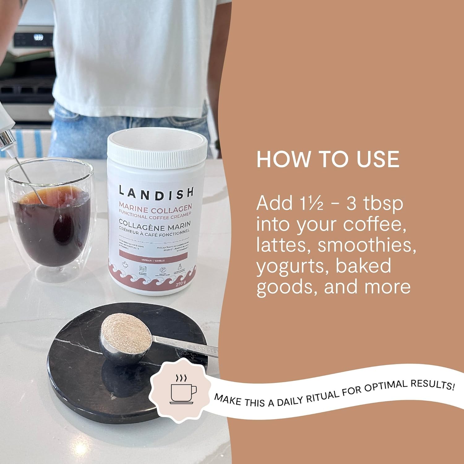 想要一款功效更強大的奶精? Landish 海洋膠原蛋白奶精是一款不含乳製品的混合奶精,旨在提升您的晨間咖啡、下午茶或任何需要提升功效的食譜的口感,並增添淡淡的香草香味。它融合了野生海洋膠原蛋白、有機靈芝和猴頭菇,以及富含維生素C和葉酸的西印度櫻桃果,為皮膚、頭髮、指甲、關節和免疫系統健康帶來一系列益處。奶精粉末可輕鬆溶於冷熱飲品中,使用起泡器可獲得更順滑、無結塊的體驗。本產品由加拿大 GMP 認證工廠生產,嚴格遵循良好生產規範,確保每批產品都擁有一流的品質。所有成分均經過第三方純度測試。不含激素和抗生素。準備好升級您的每日早晨護理了嗎?立即加入購物車,體驗 Landish 海洋膠原蛋白咖啡奶精的好處!