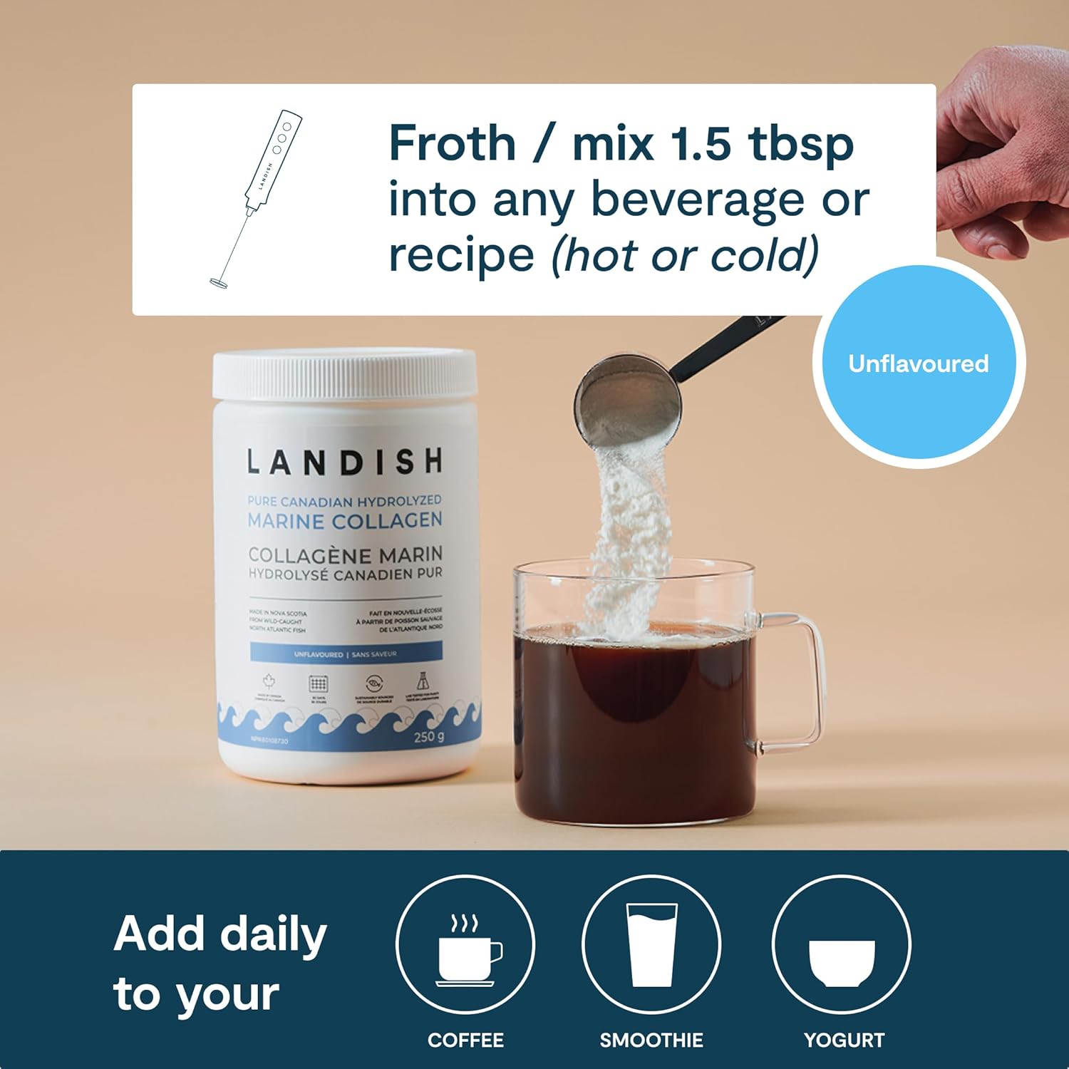 Landish 純加拿大海洋膠原蛋白肽粉 - 全身性益處和關節支持,適用於女性和男性 - 水解、無味、超純蛋白質補充劑 - 完全溶解,0 碳水化合物和糖 - 加拿大製造 - 2…